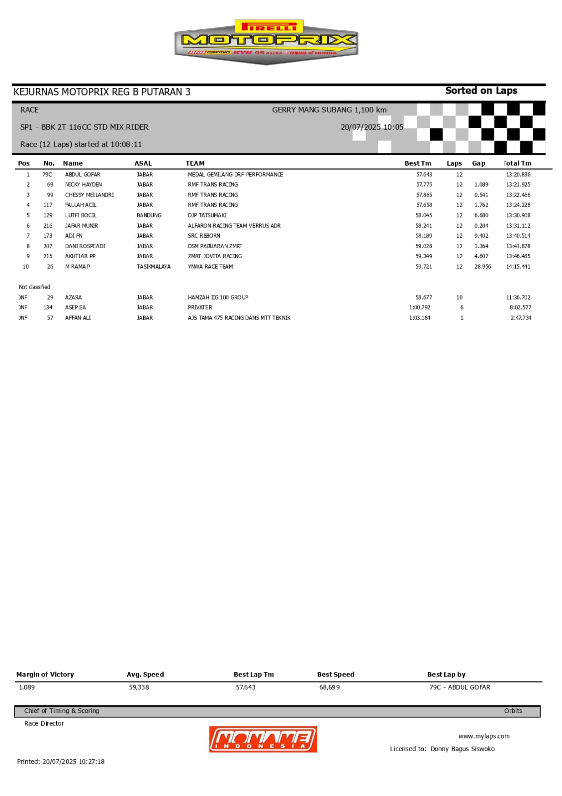 susah untuk bisa menjaga jarak. Jadi saya fokus bermain konstan karena motor juga terasa aman. Alhamdulillah bisa juara dikelas ini.” terang Abdul Gofar.