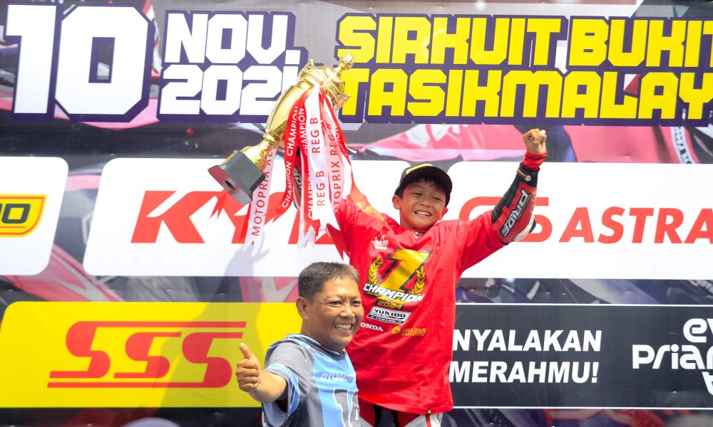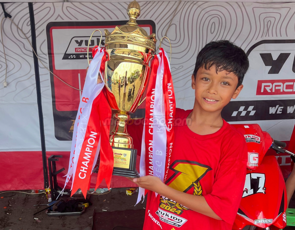 MOTOBALAP.COM – Abimanyu Bintang Fermadi, pebalap muda berbakat tim Honda Yukido Raceteam Khazer Gordon Pride RCB Proliner NHK, berhasil meraih gelar Juara Nasional dalam kategori MP4 Beginner pada ajang Final Kejuaraan Nasional (Kejurnas) Motoprix Region B yang digelar di sirkuit Bukit Peusar, Tasikmalaya, Sabtu-Minggu (09-10/11).