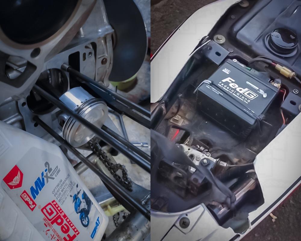 “Untuk Produk oli Fed G yang sudah melalui riset bersama tim kami Blitar Raya WB Big Mx mendapat hasil yang bagus, dengan aplikasi pada Matic Honda Beat spesifikasi motor 115 cc standart untuk road race. Hasil Risetan sendiri Fed G Type MVX-2 X-Treme Lube 10 W – 30 saya maksimalkan dengan ubahan clereance piston ke liner/ silinder, yg biasa pakai 0,05 mm jadi 0,065 mm. Overall Untuk mesin tetap oke dari segi performanya,” terang Wibi ST, akrab di panggil Wibi Kancil, mekanik dari Tim Blitar Raya WB Big Mx Blitar.