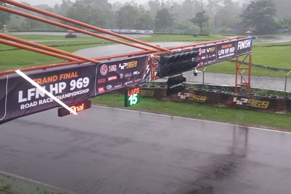 MOTOBALAP.COM – Gelaran Grand Final LFN HP 969 Road Race Championsip 2023 di guyur hujan deras sejak 14.58 wib.
