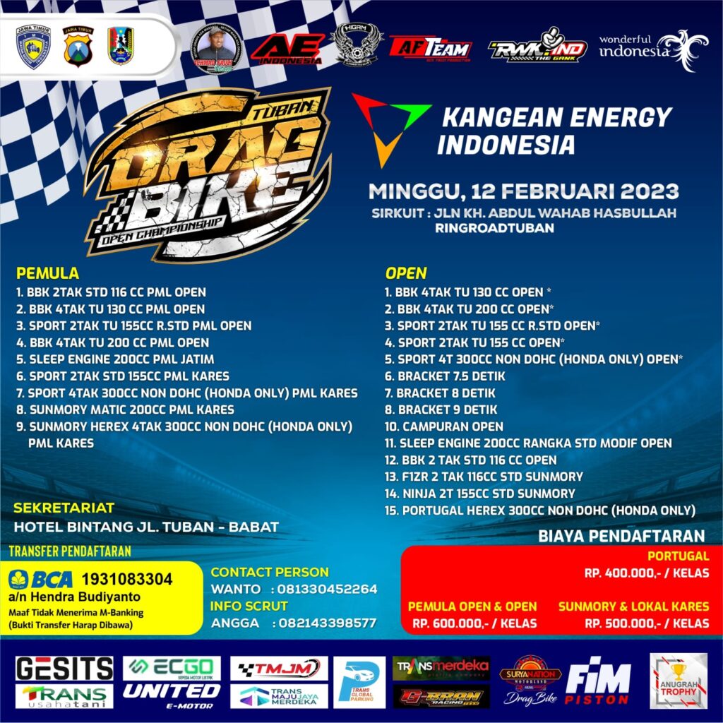 Yup, pada ajang di Tuban akhir pekan ini kelas yang akan mereka sajikan lebih bervariatif. Hal ini terlihat jelas di news letter yang sudah mereka terbitkan sebelumnya, dengan harapan bisa lebih memunculkan bibit-bibit muda Dragster di kelas pemula.