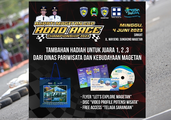 MOTOBALAP.COM – Dalam Rangka meningkatkan kembali sektor pariwisata Kabupaten Magetan, pihak Dinas Pariwisata dan Kebudayaan setempat mengambil langkah cemerlang dengan pemberian reward bagi para juara di event Bupati Magetan Cup Road Race Championship 2023.