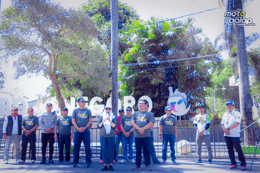 Setelah Dandim 0813 dan Bupati Bojonegoro memberikan kemudian ke dua tokoh masyarakat ini membuka ajang Dandim 0813 Cup Road Race Bojonegoro.