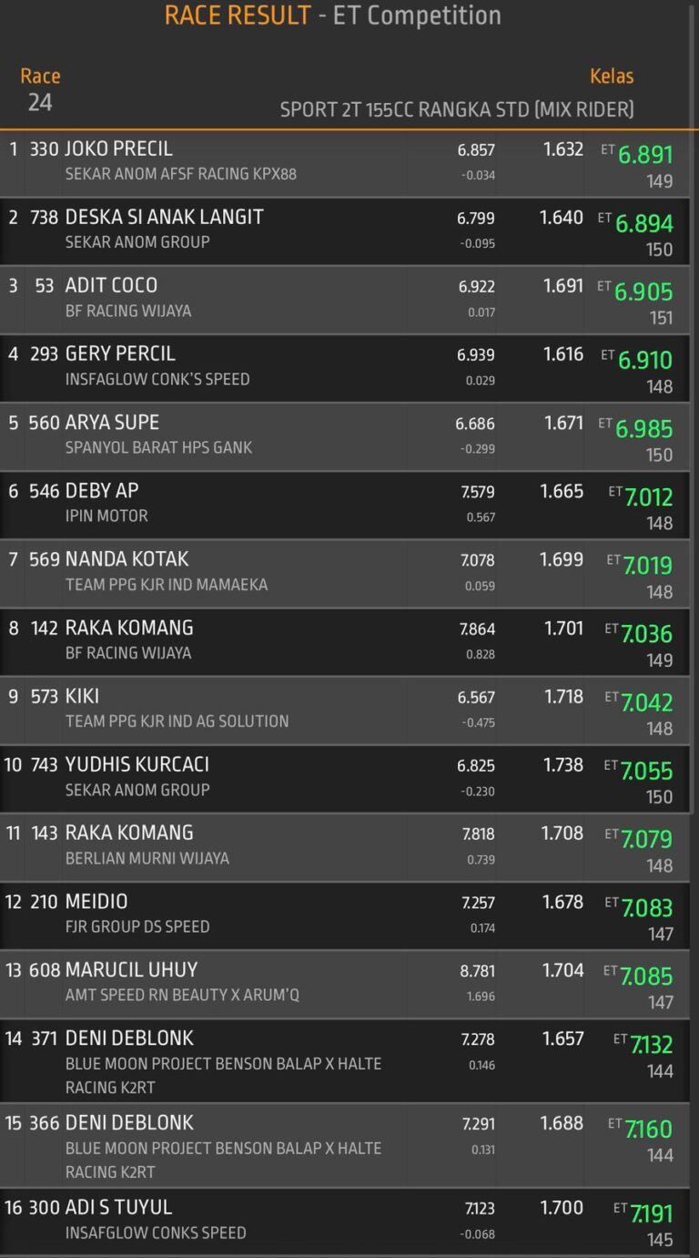 Dengan grafik performa yang terus stabil, publik dragbike tentu menantikan apakah Sekar Anom Group mampu menembus angka yang lebih rendah lagi di event selanjutnya.