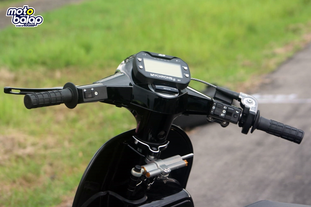 “Vespa PK ini dibangun kurang lebih satu tahun. Lama pengerjaannya karena memang tidak semuanya plug and play. Harus menjalani berbagai penyesuaian agar bisa terpasang optimal,” ucap builder Vespa itu yang mengaku sebelumnya juga pernah dapat orderan macam Vespa PK ini, tapi berkapasitas 130 cc.