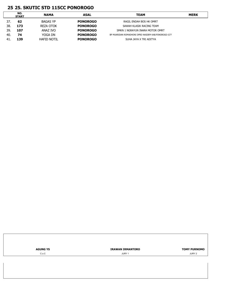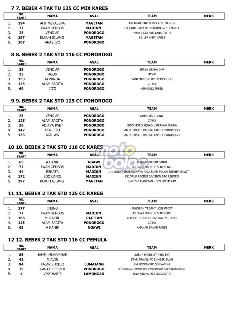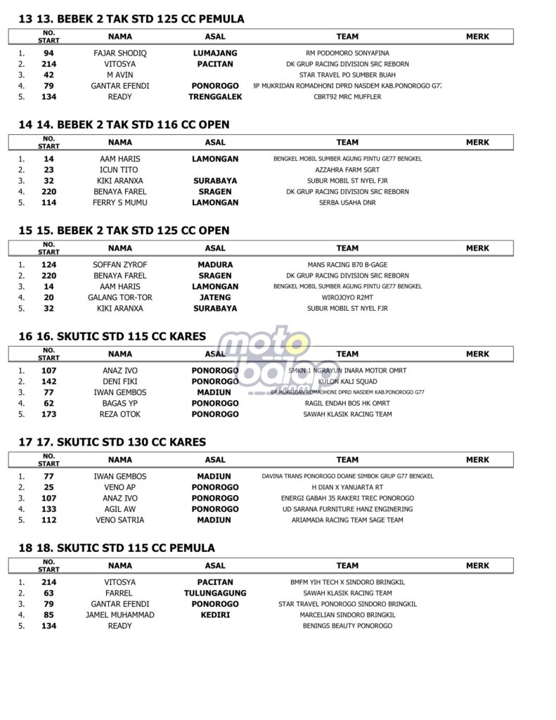 Dari keselurahan kelas yang dilombakan, di bawah ini merupakan Hasil Grebeg Suro Road Race Open Championship 2023 Ponorogo adalah sebagai berikut: