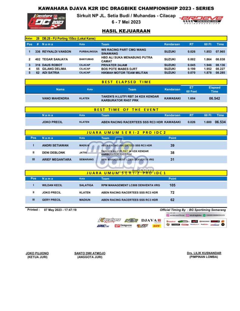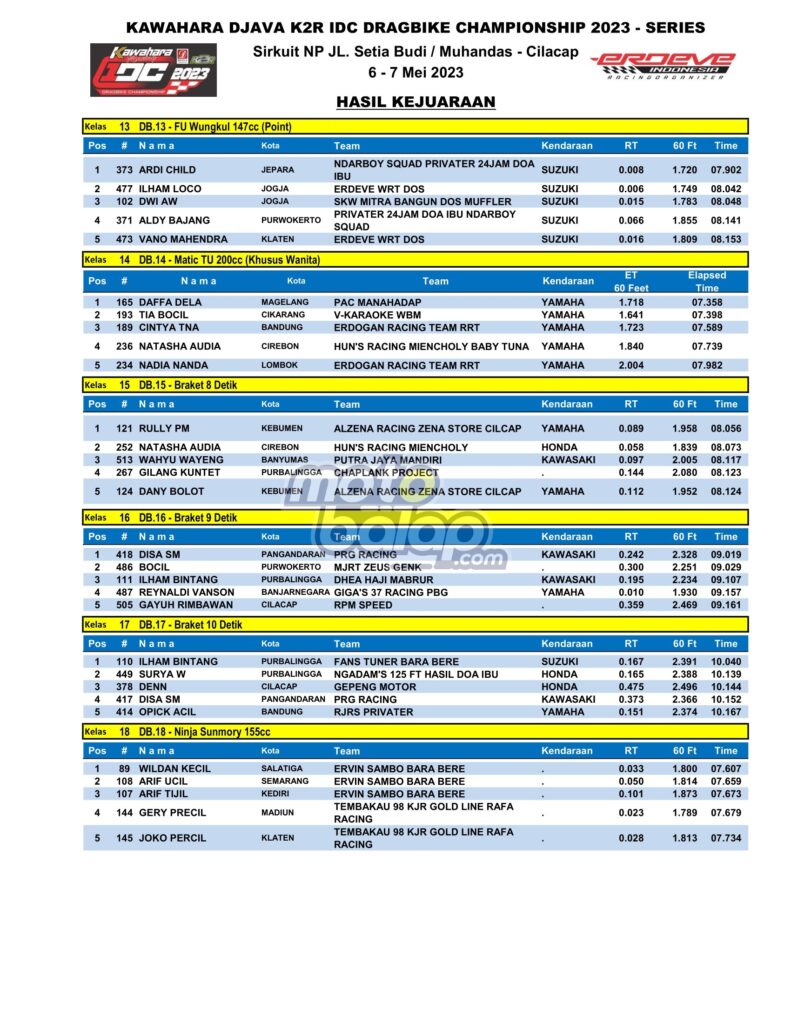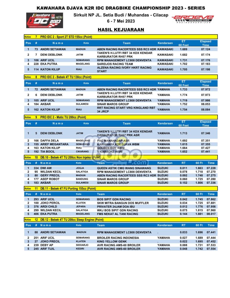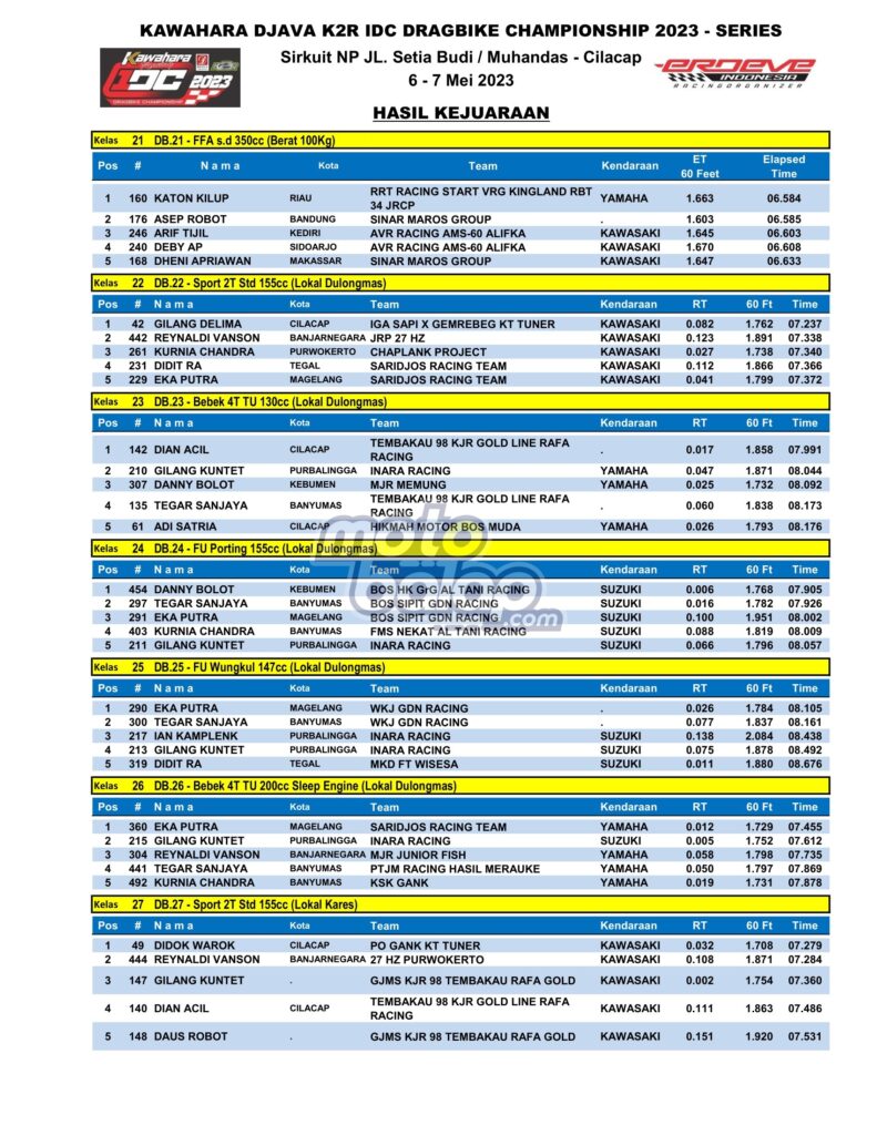 Hasil IDC Dragbike Championship 2023 Cilacap