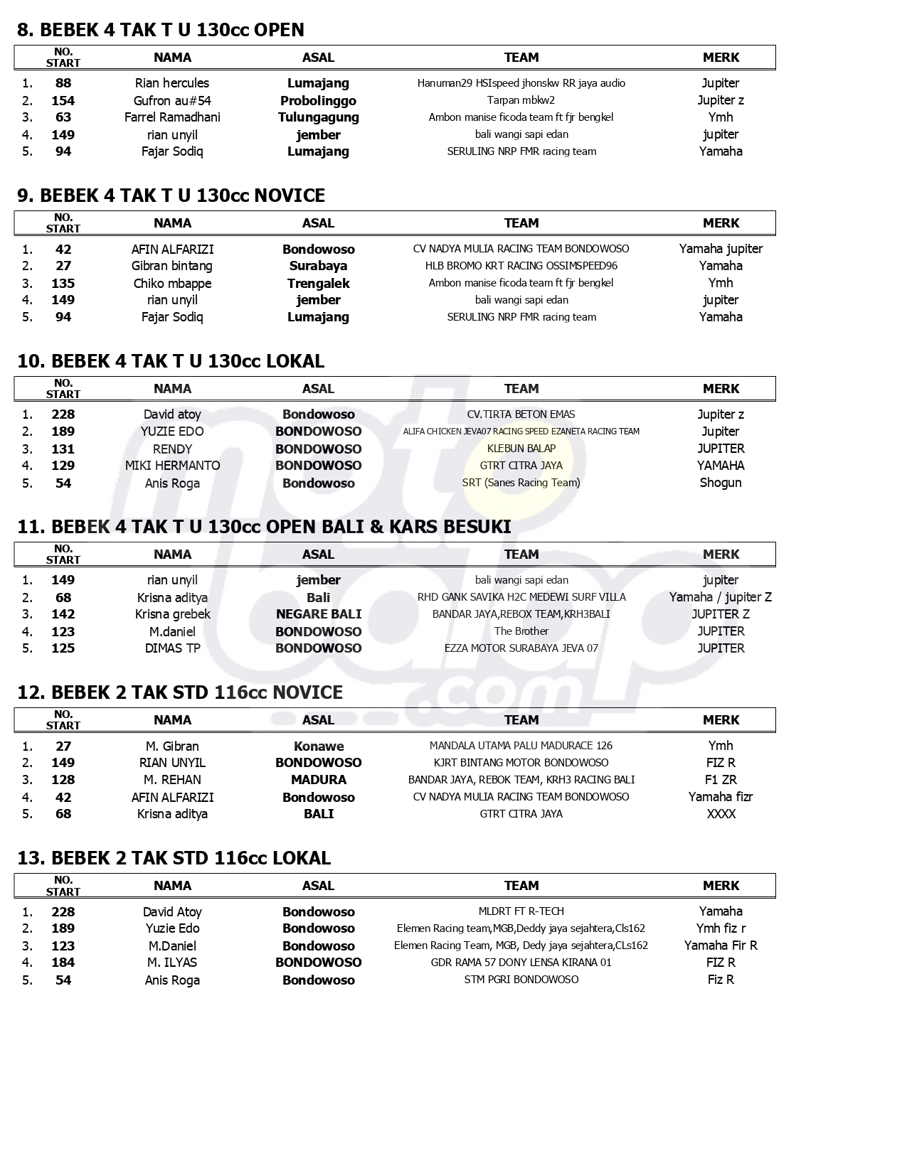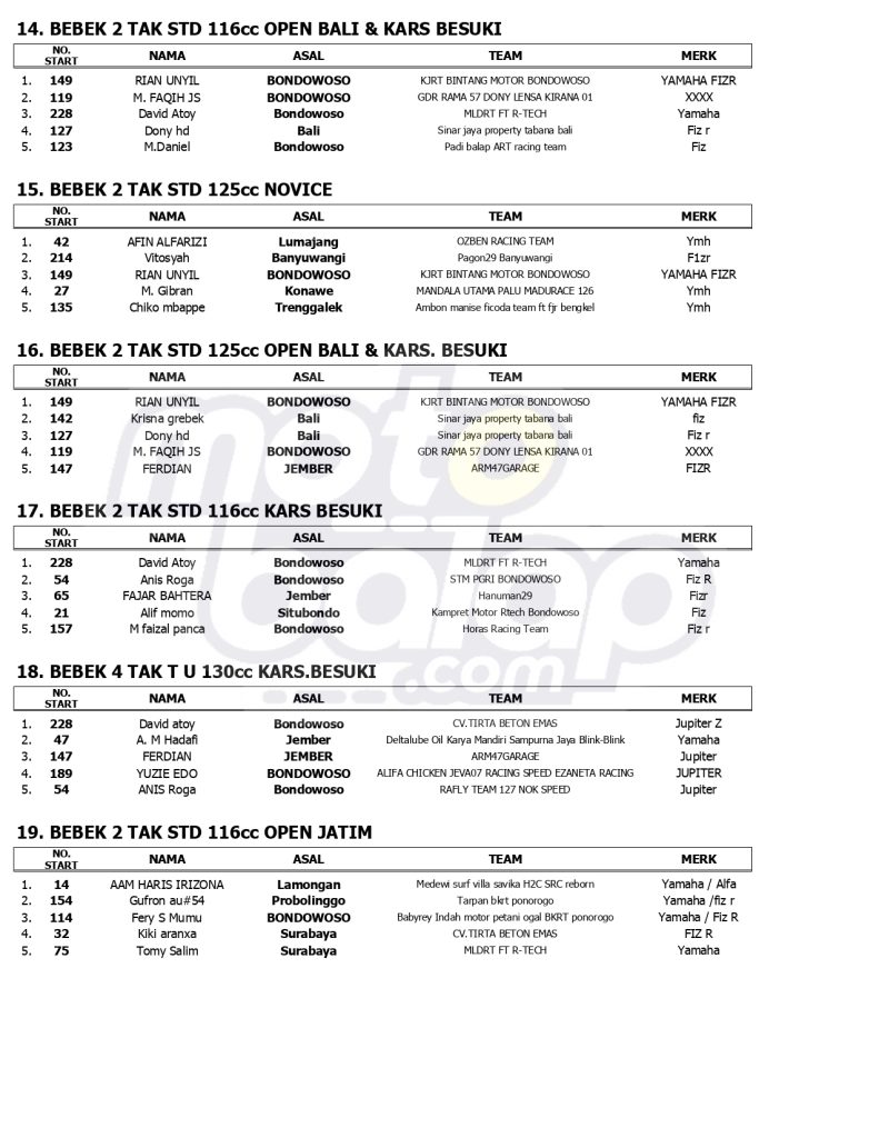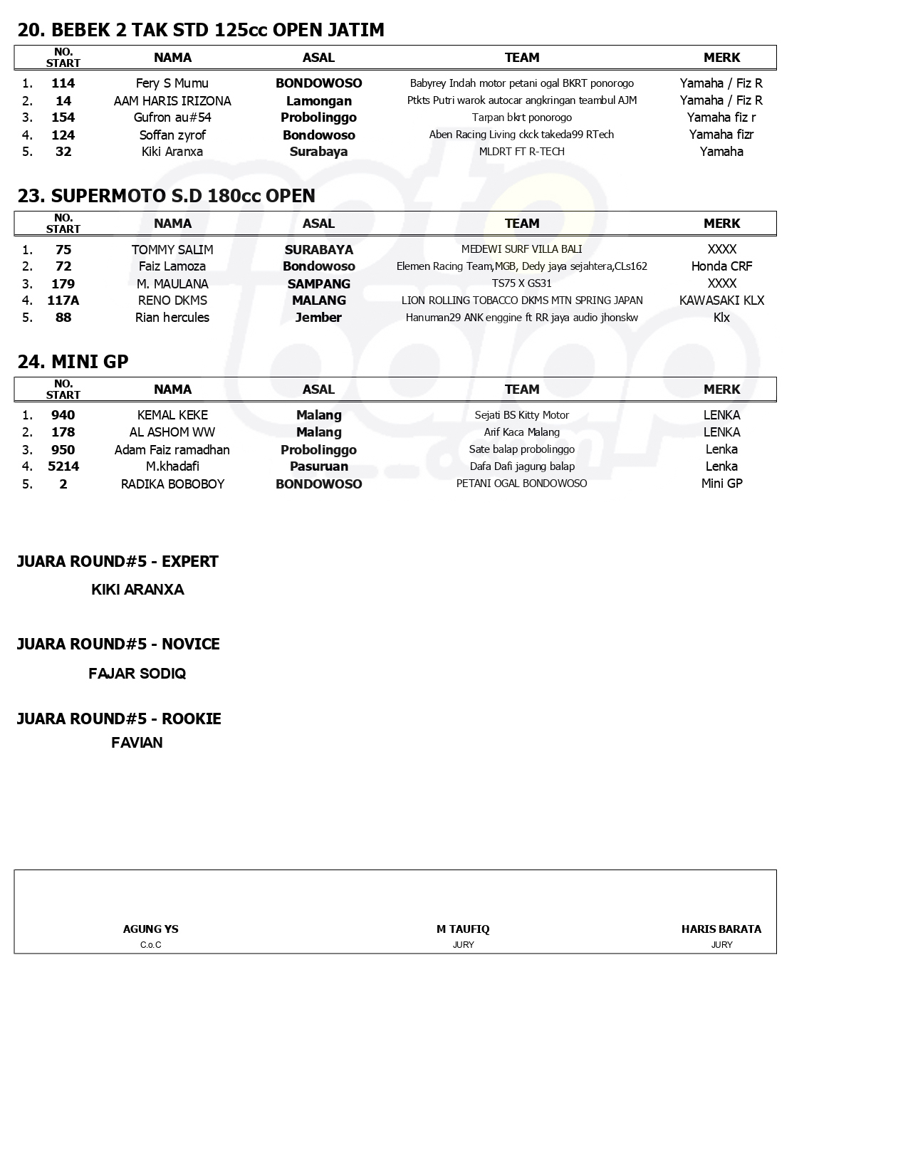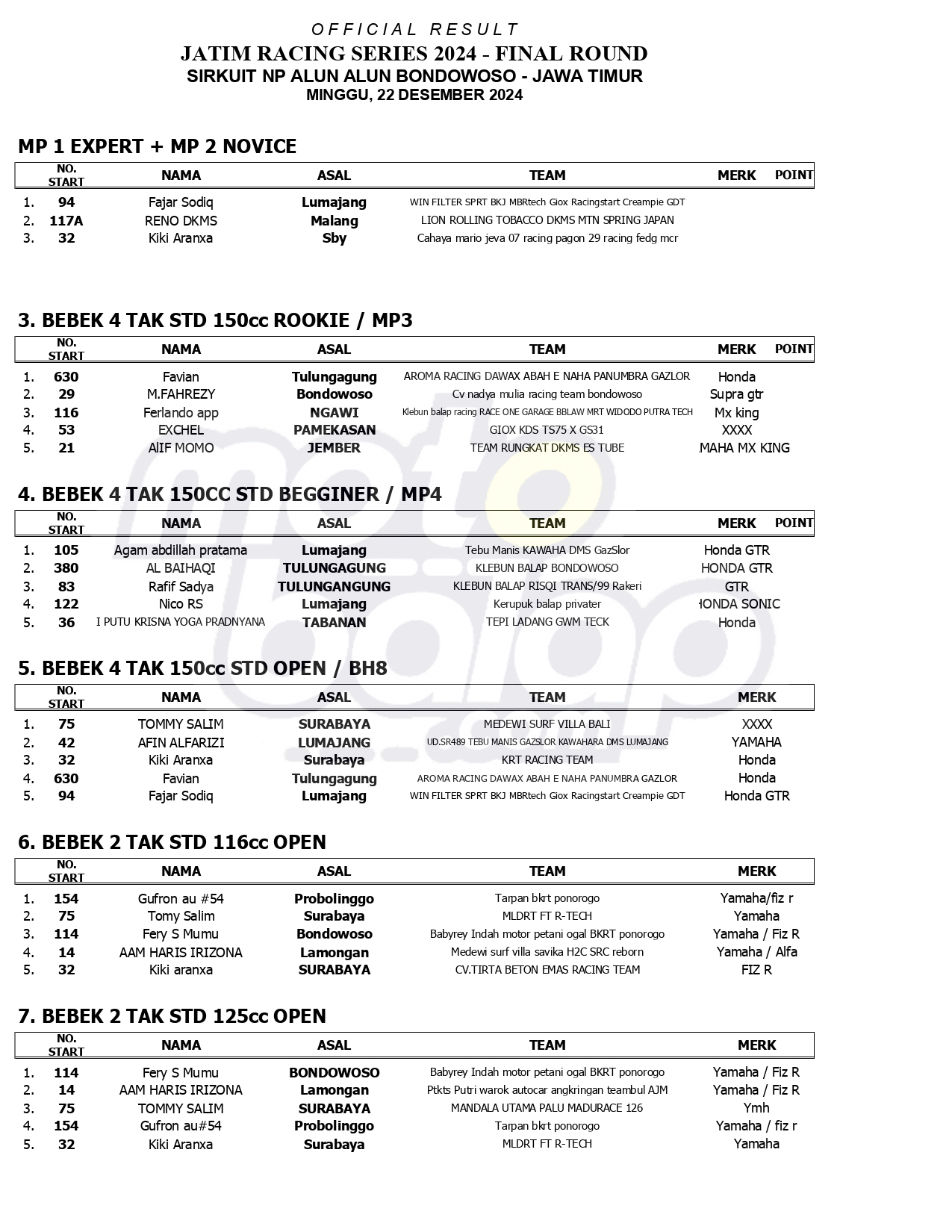 Hasil Juara Jatim Racing Series Final Round 2024, Sirkuit NP. Alun-Alun Bondowoso (22/12)