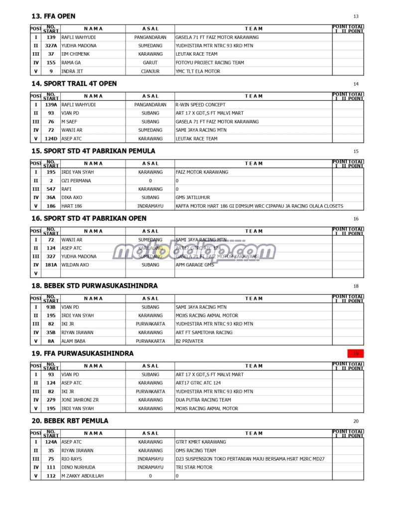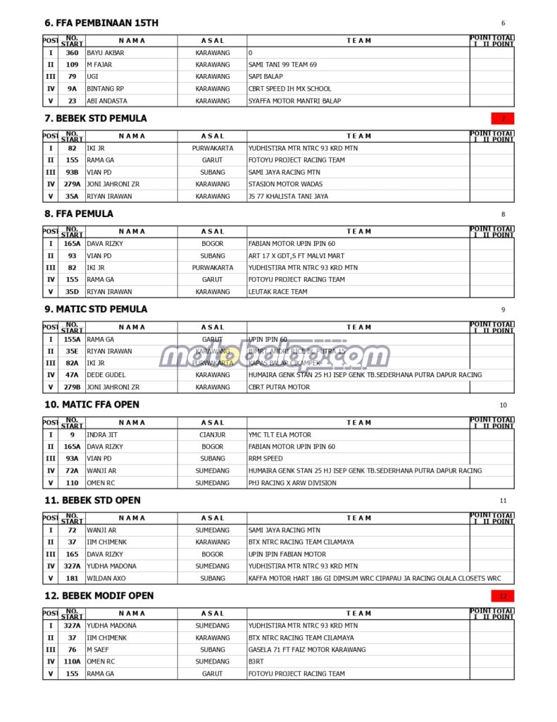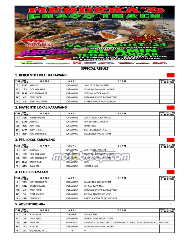 MOTOBALAP.COM- Berikut Ini Adalah Hasil Juara Merdeka 79 Grasstrack yang berlangsung disirkuit Al Amin Tegal Landak Cilamaya Karawang (25/8).