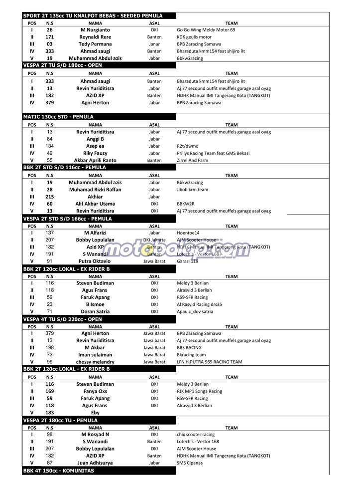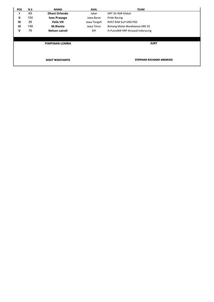 Hasil Juara Sentul Road Race Championship Putaran 1