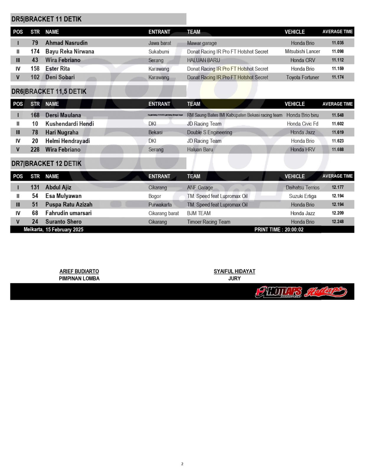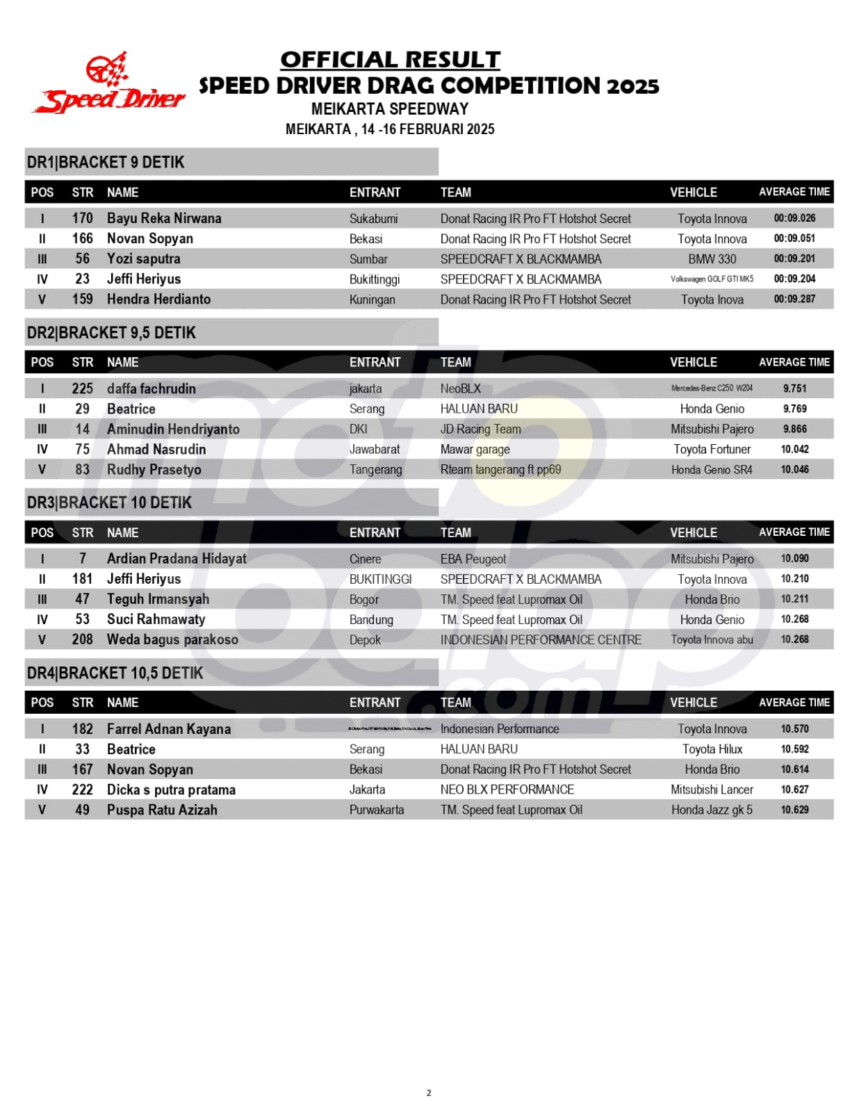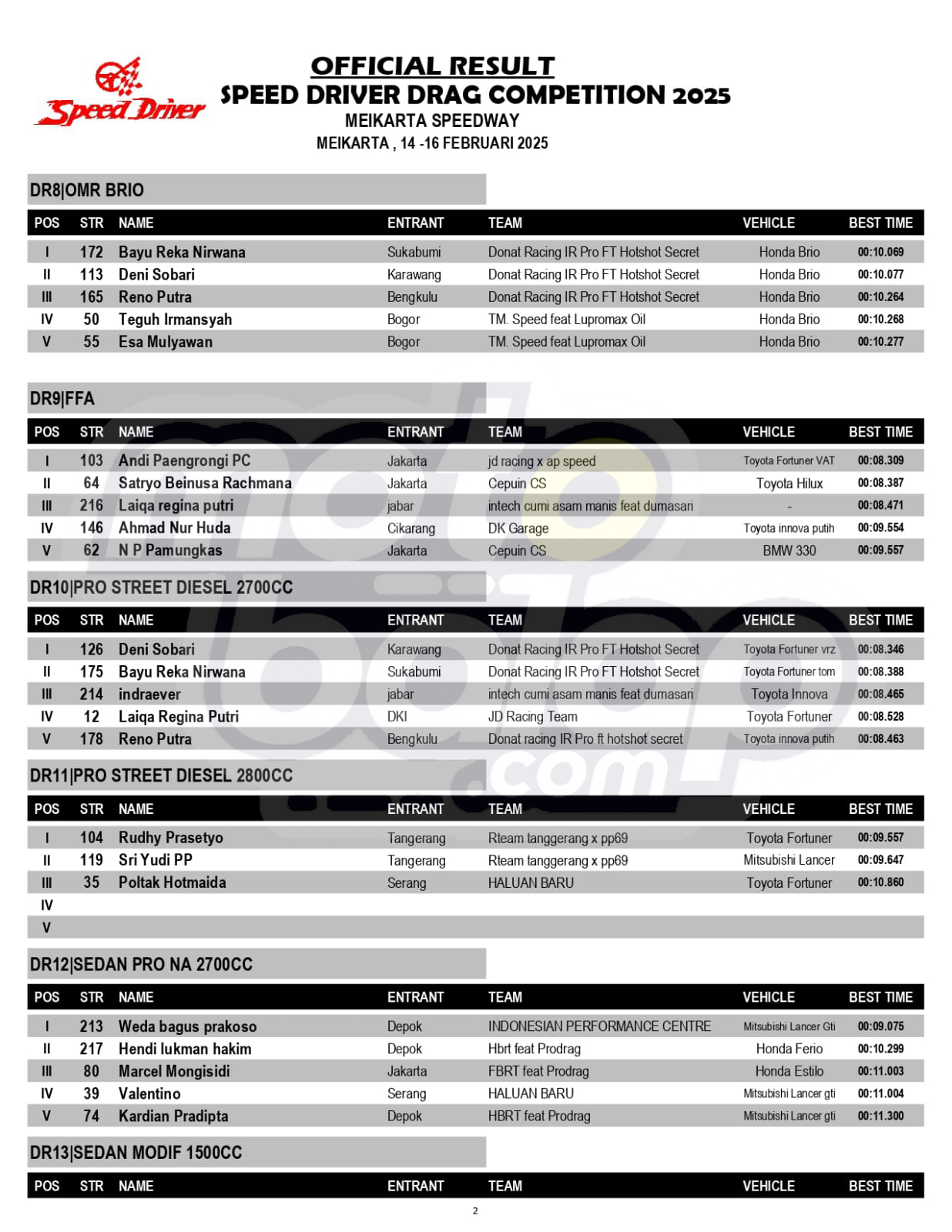 Hasil Juara Speed Driver Drag Competition 2025 Meikarta (14-16/2)