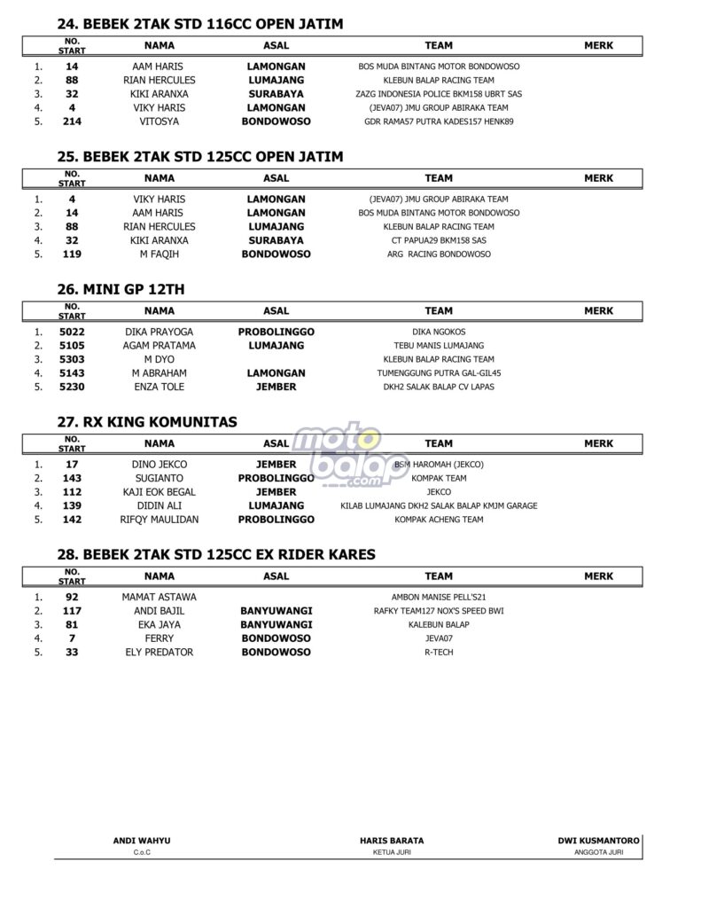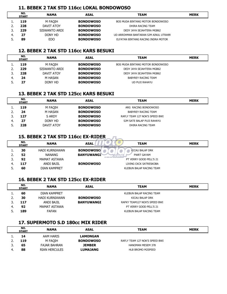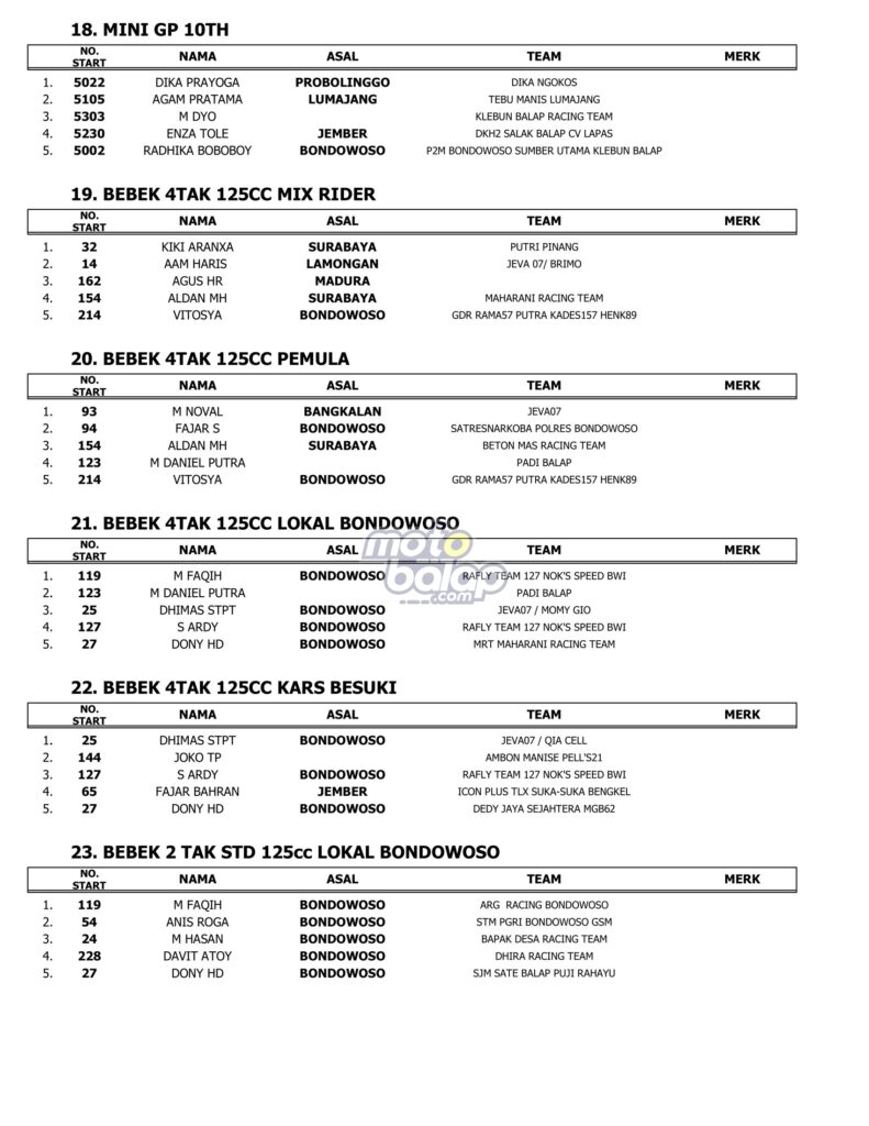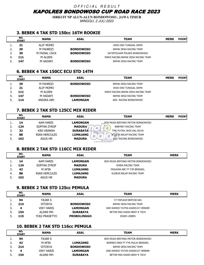 Hasil Kapolres Bondowoso Cup Road Race 2023