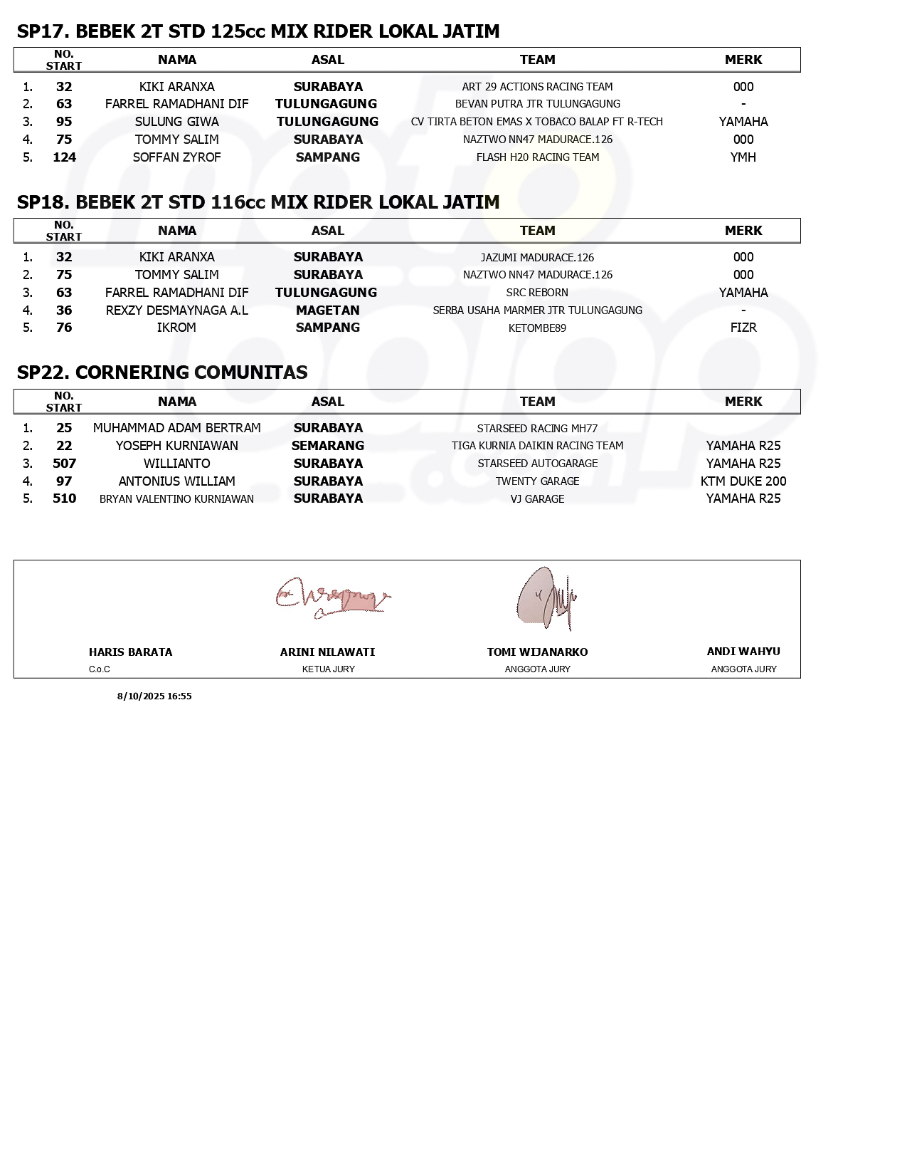 Hasil Kejuaraan Matapanah Cup Race Putaran 2 Surabaya 2025