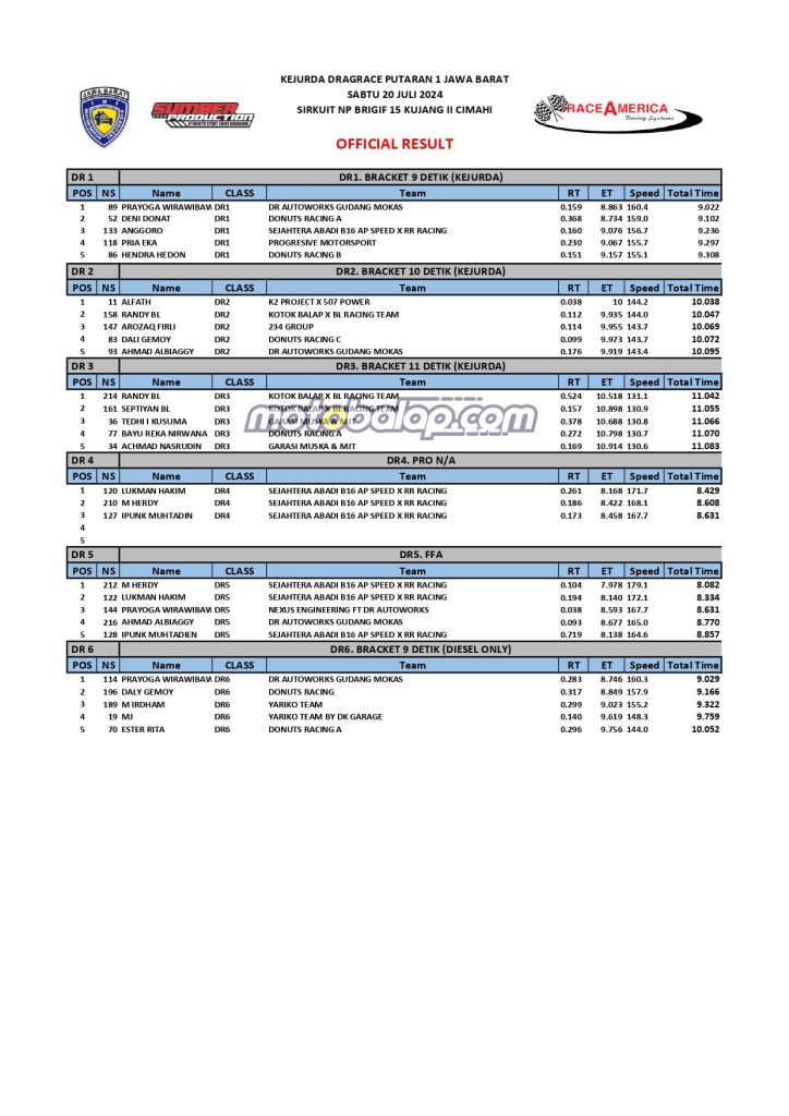MOTOBALAP.COM- Berikut ini adalah Hasil Kejurda DragRace Putaran 1 Sirkuit NP. Brigif 15 Kujang II Cimahi Jawa Barat yang berlangsung Ini Sabtu 20 Juli 2024, Jawa Barat.
