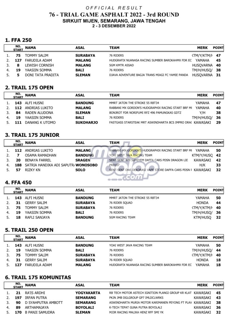 Hasil Lengkap 76 Trial Game Asphalt (TGA) rd.3 Mijen 2022