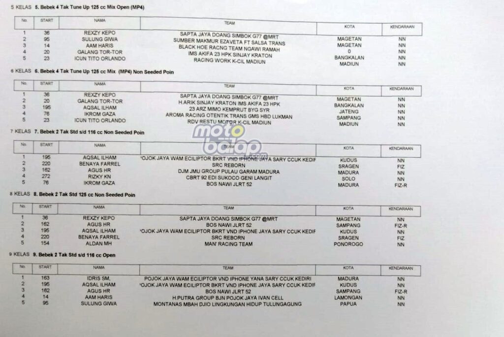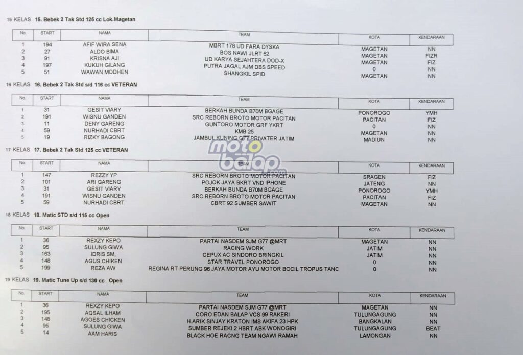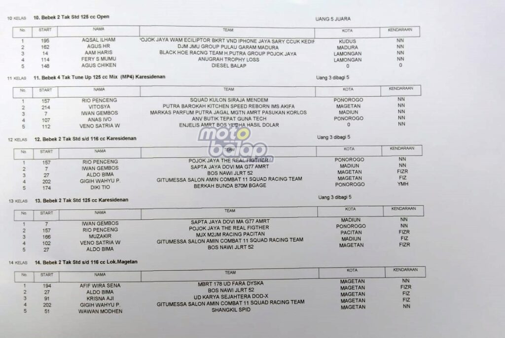 Berikut Hasil Lengkap Bupati Magetan Cup Road Race Ft Racing Work Indonesia 2022: