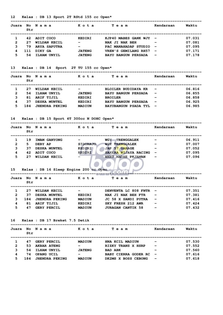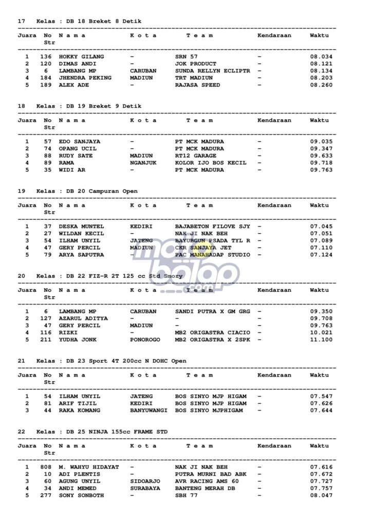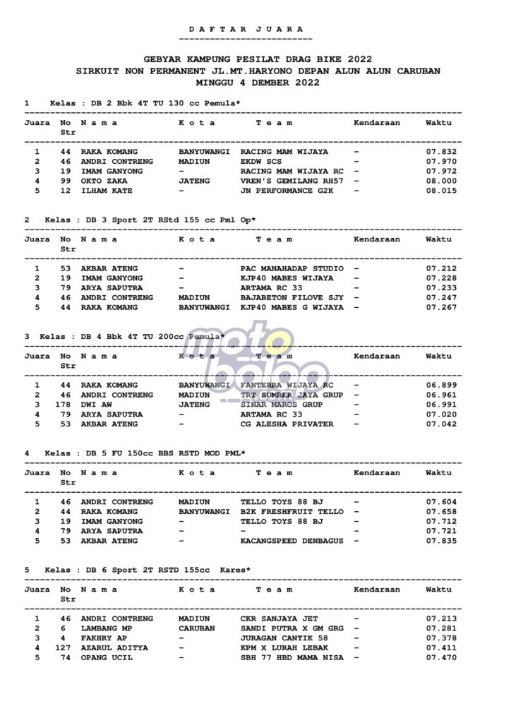 Di Bawah ini merupakan Hasil Lengkap Gebyar Kampung Pesilat Dragbike RWK Open Championship 2022 adalah sebagai berikut: