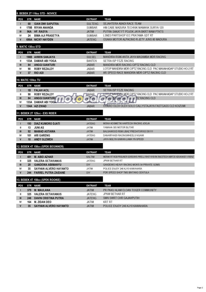 MOTOBALAP.COM- Berikut adalah hasil lengkap kejuaraan LFN HP969 Road Race Championship 2024 putaran pertama yang berlangsung di sirkuit Gelora Bung Tomo (GBT) Surabaya pada 23-24 Juni 2024.