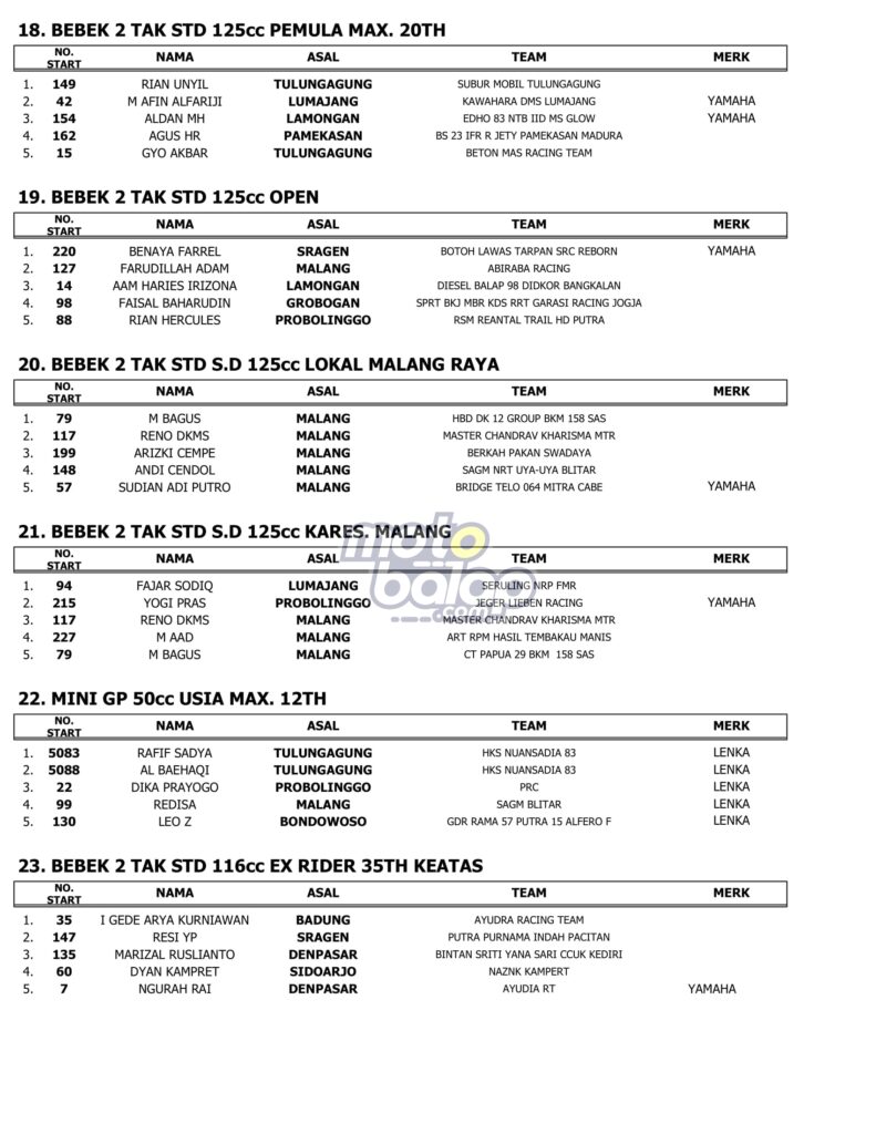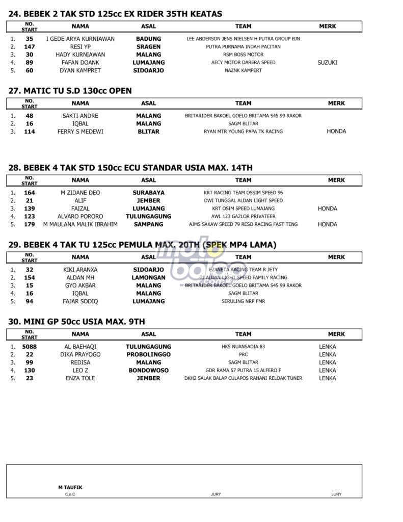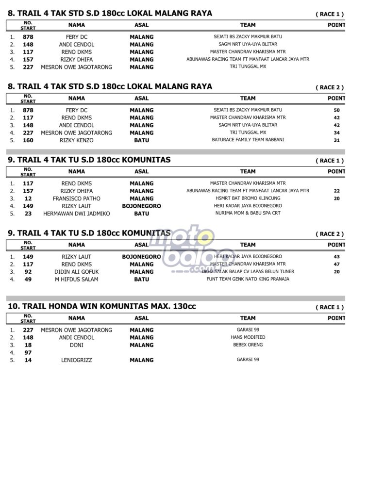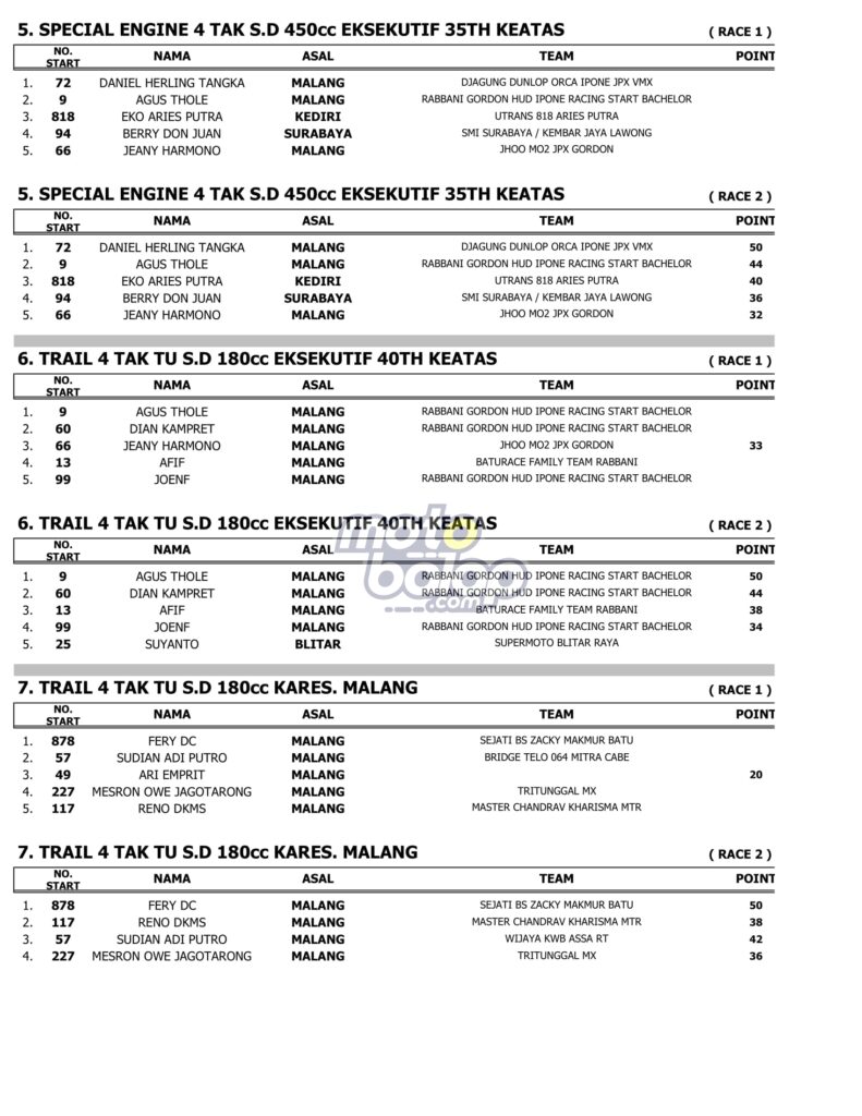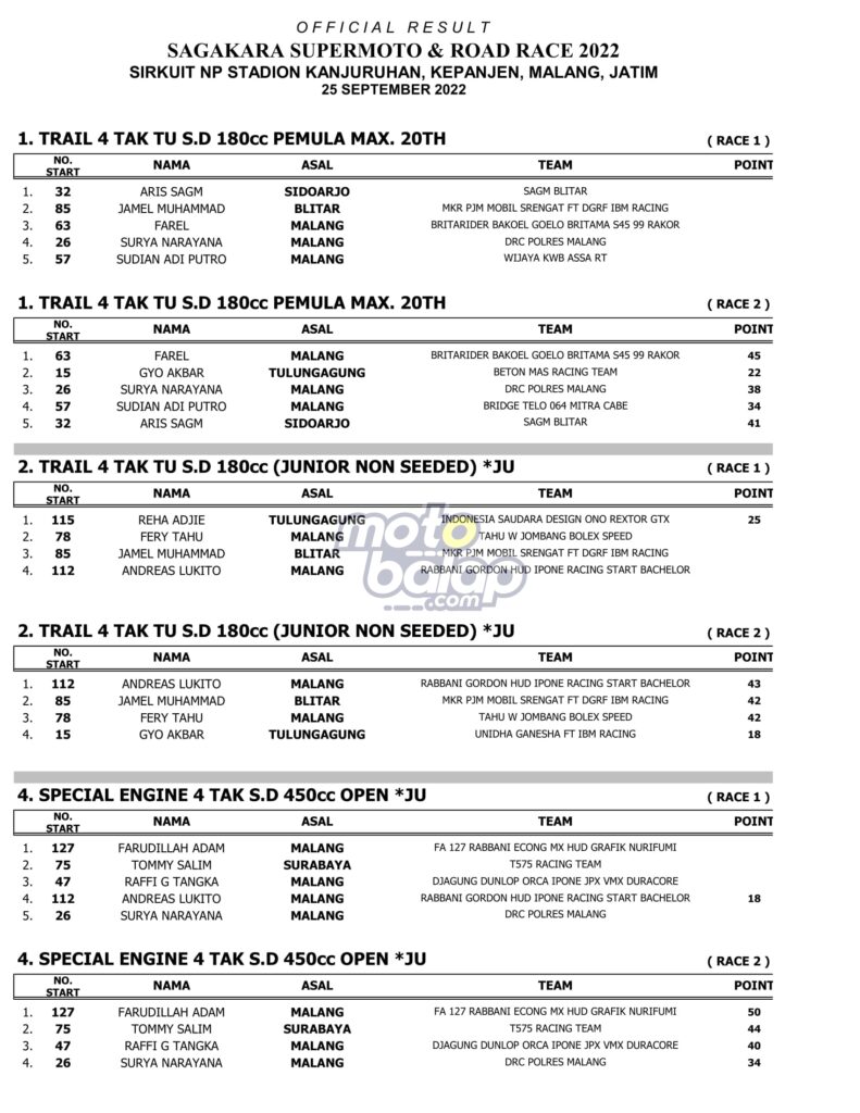Berikut merupakan Hasil Lengkap USagakara Supermoto & Road Race 2022 adalah sebagai berikut:
