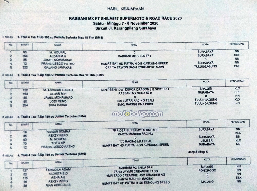 Hasil Lomba Rabbani Mx Feat Shila 57 Supermoto And Road Race Jatim 8 November 2020