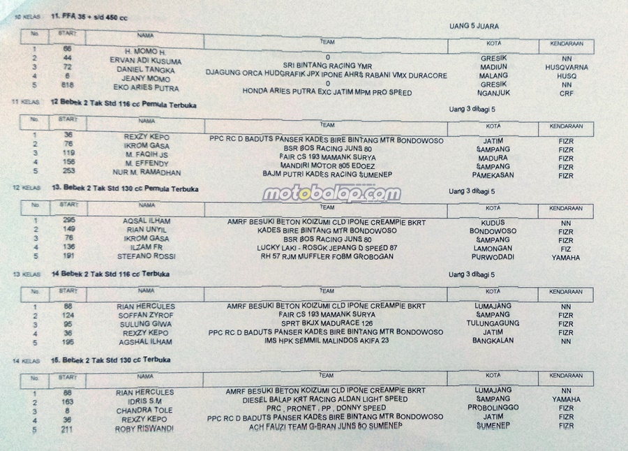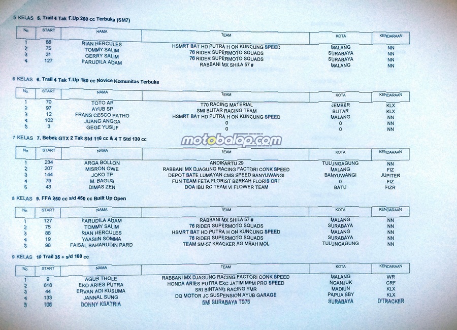 Langsung saja lihat hasil kejuaraan Rabbani Mx Feat Shila 57 Supermoto And Road Race Jatim 2020 di bawah ini: