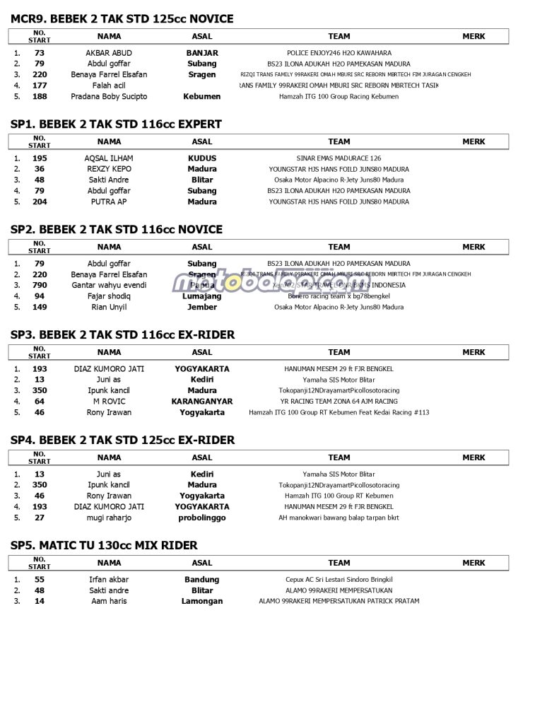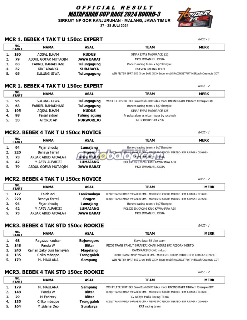 MOTOBALAP.COM- Berikut adalah Kejuaraan Matapanah Cup Race 2024 yang berlangsung di Sirkuit Kanjuruhan, Malang (27-28/7).