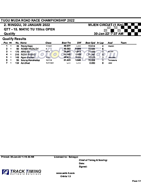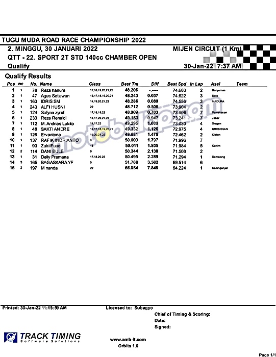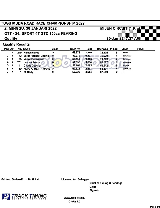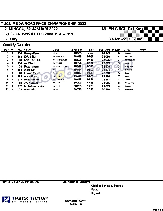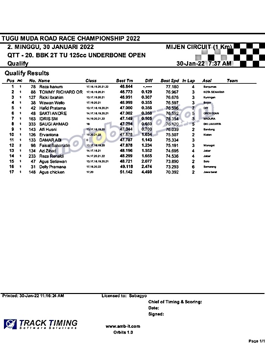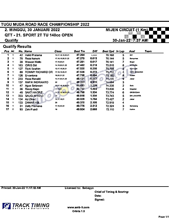 Hasil QTT Lengkap Tugu Muda Road Race Minggu 30 Januari 2022, MOTOBALAP.COM – Berikut merupakan foto-foto hasil QTT Lengkap gelaran event Tugu Muda Road Race Championship 2022 yang dihelat di sirkuit Mijen, Semarang, Jawa Tengah, Minggu (30/01/2022) adalah sebagai berikut: