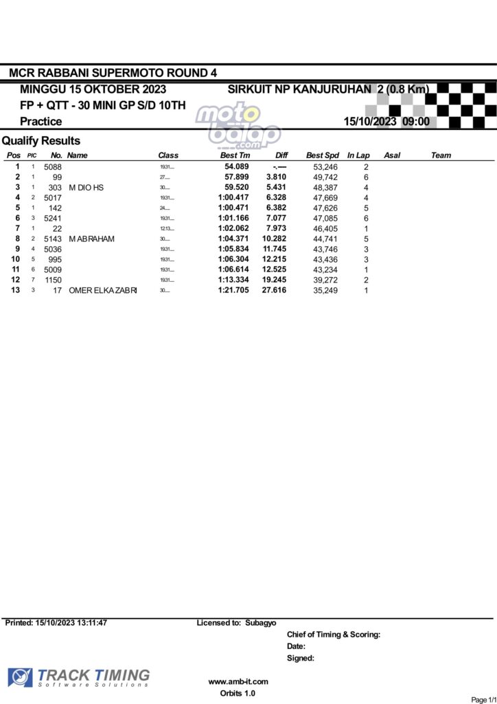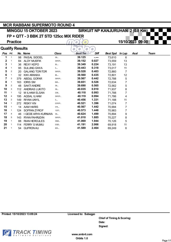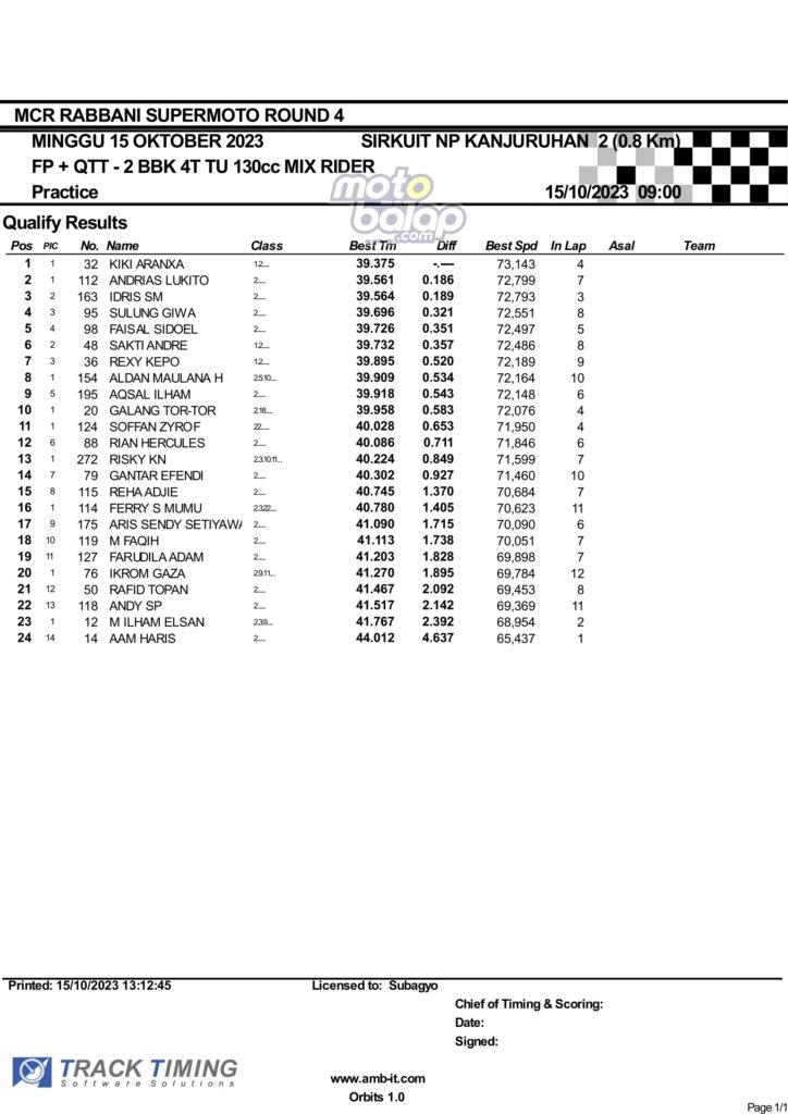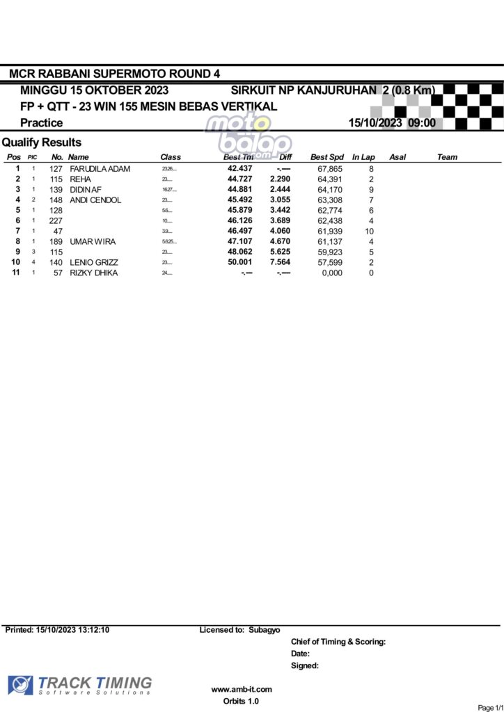 Hasil QTT Minggu Rabbani Supermoto Seri 4 Race 1 Malang