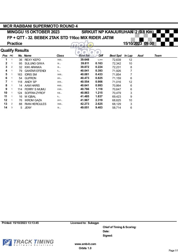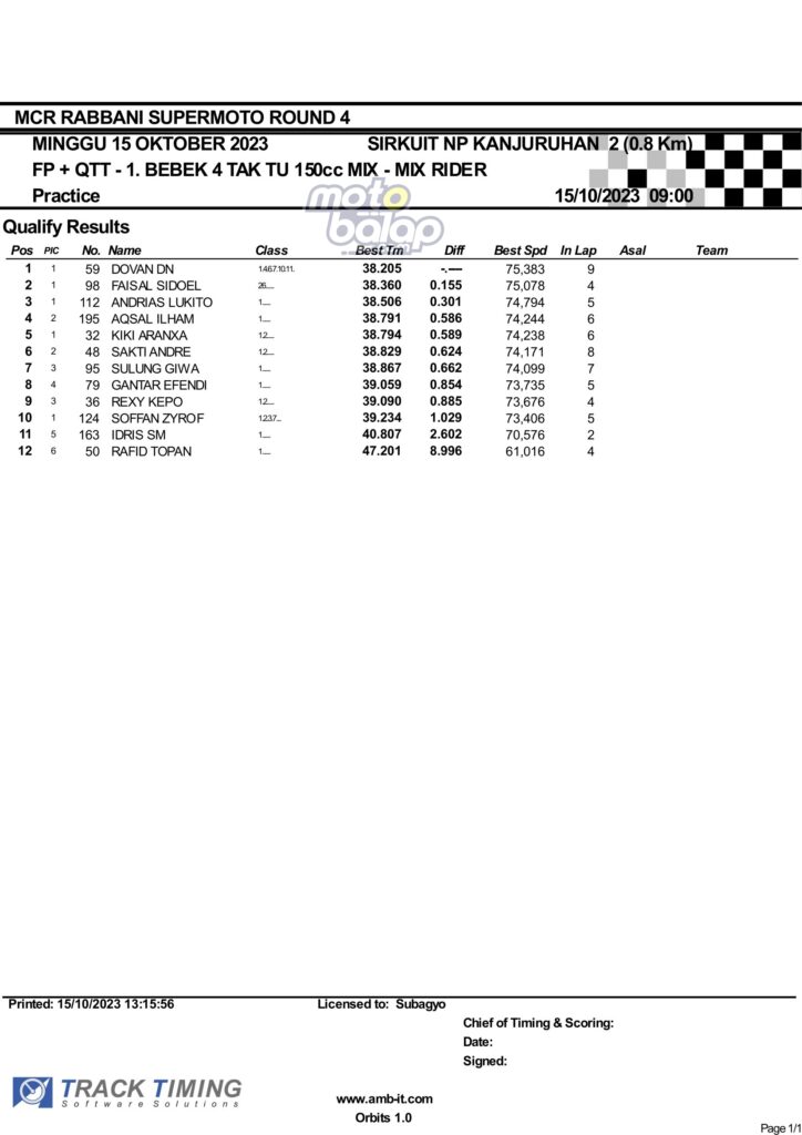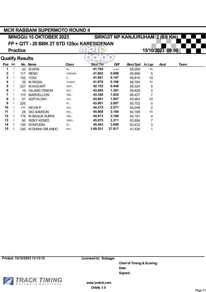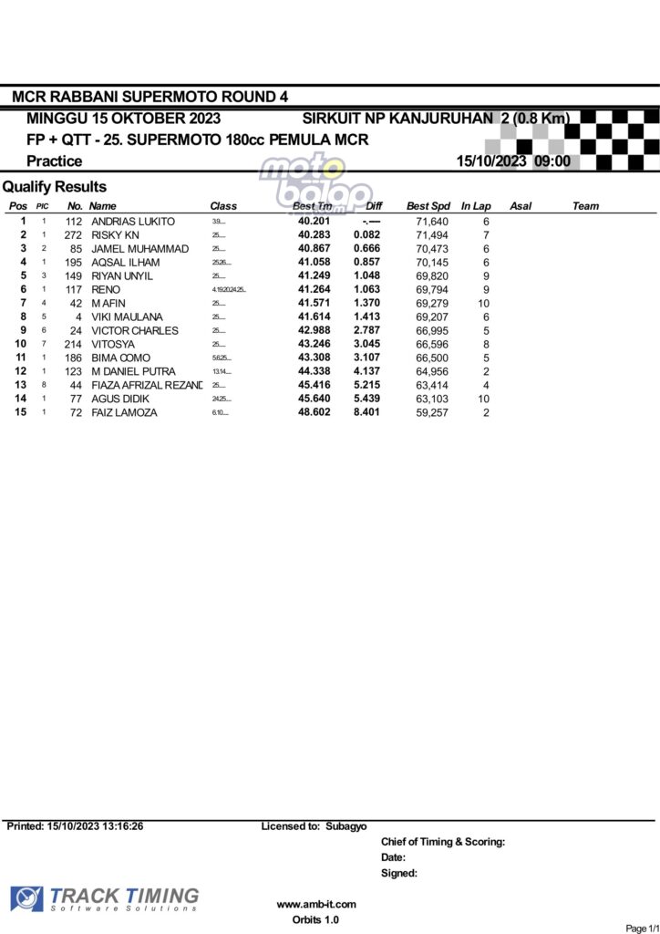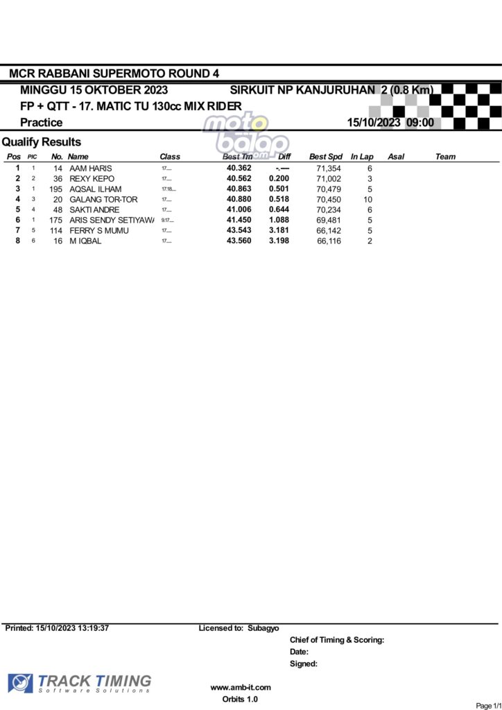 Hasil QTT Minggu Rabbani Supermoto Seri 4 Race 1 Malang