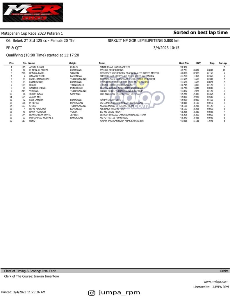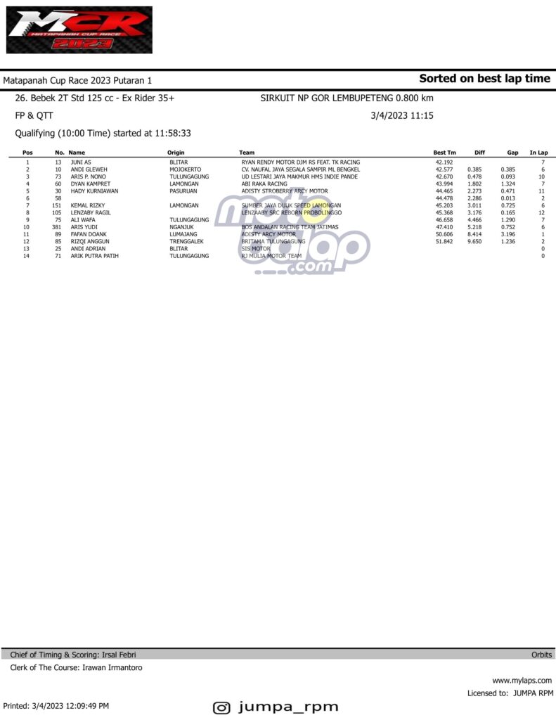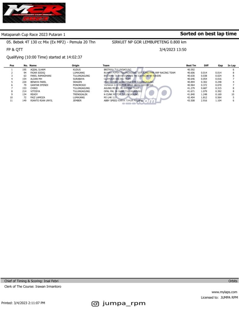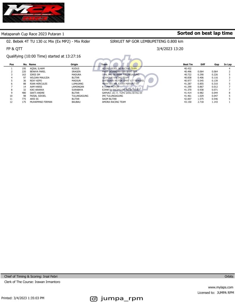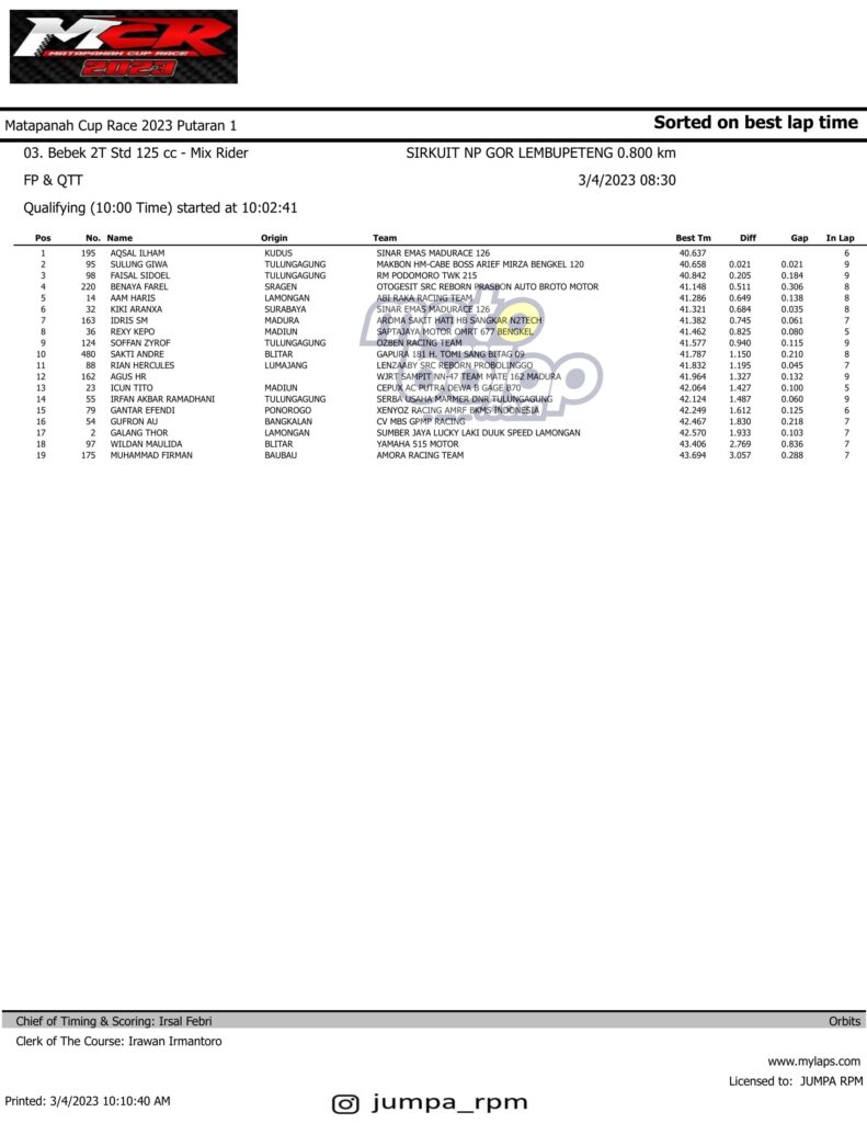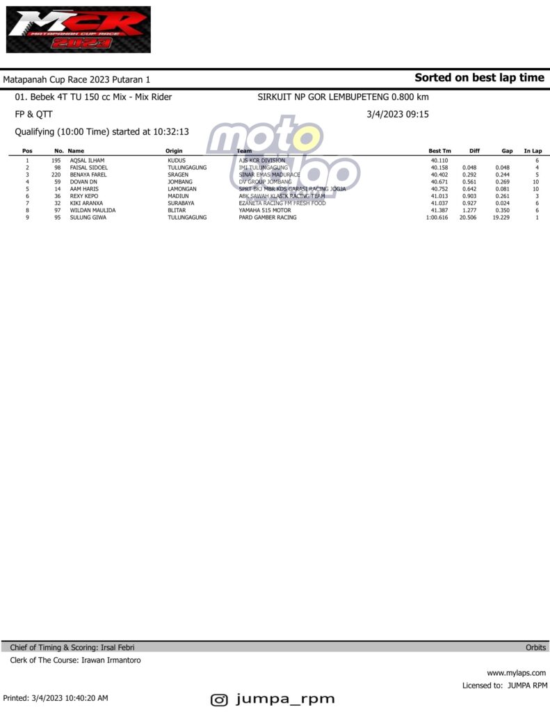 Hasil QTT & Race Mata Panah Cup Race (MCR) 2023 Tulungagung Sabtu