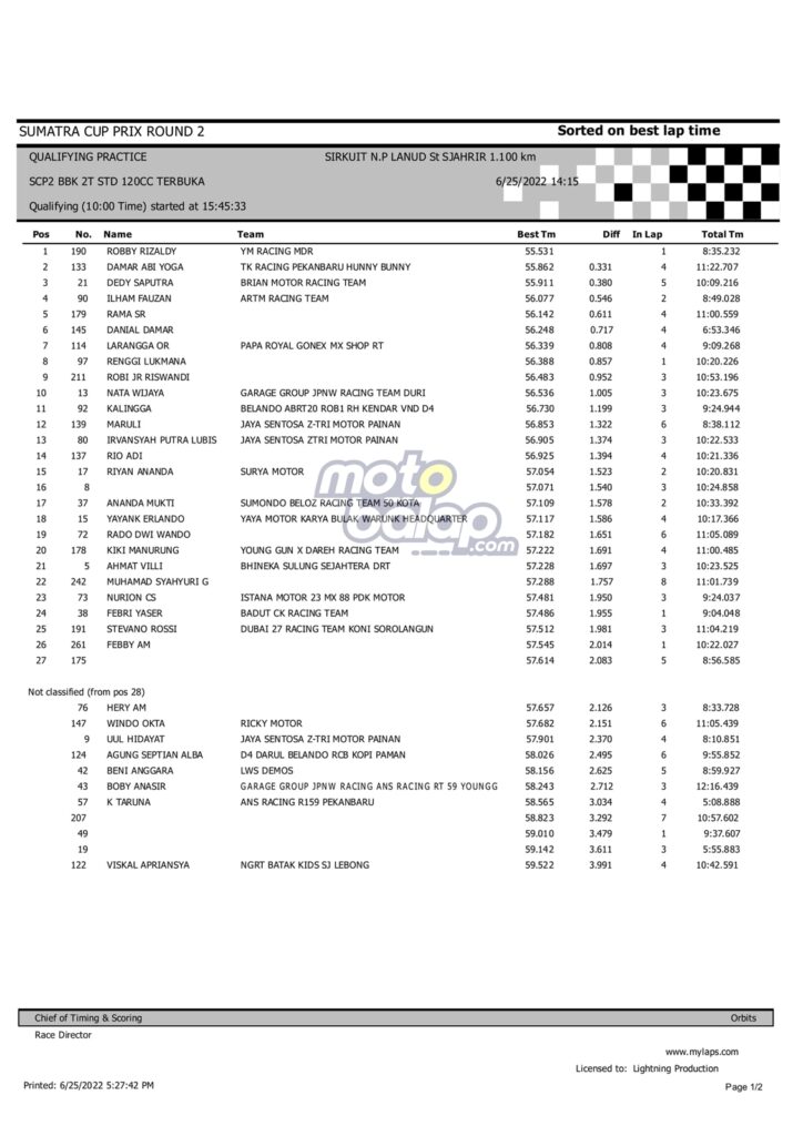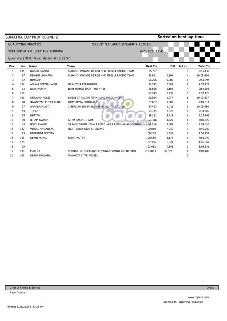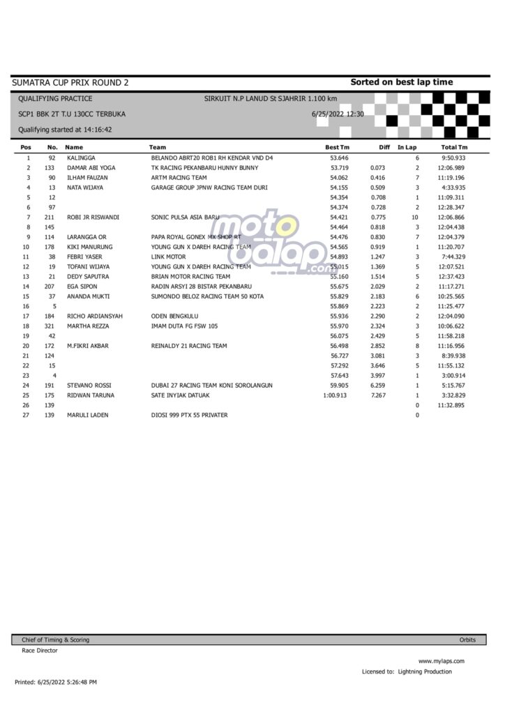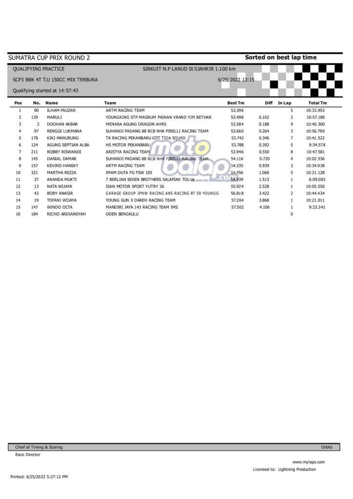 Hasil QTT Sumatera Cup Prix rd.2 Padang 2022