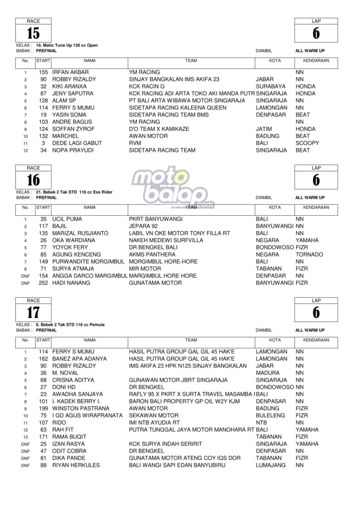 Hasil Race dan Prefinal Jembrana Bahagia Road Race Championsip 2022 Bali