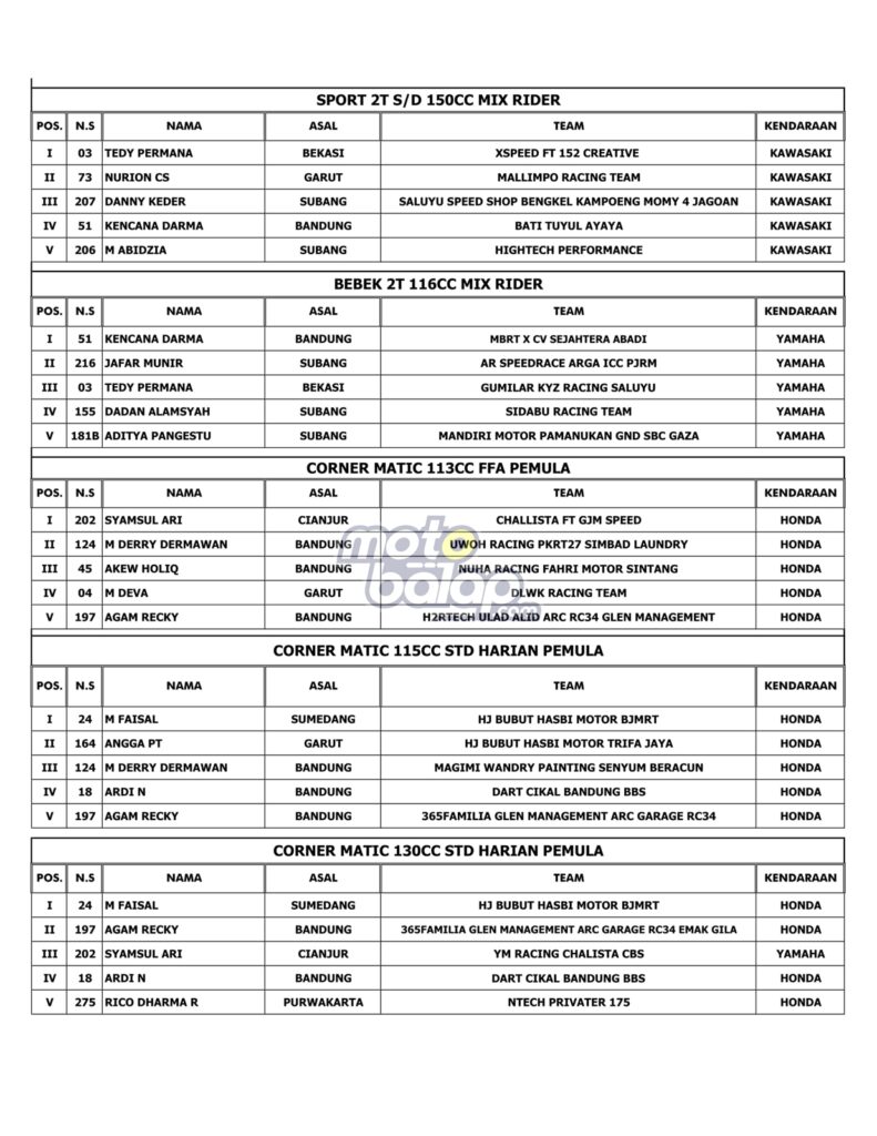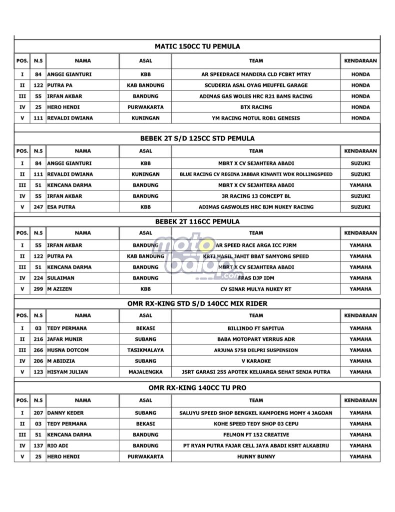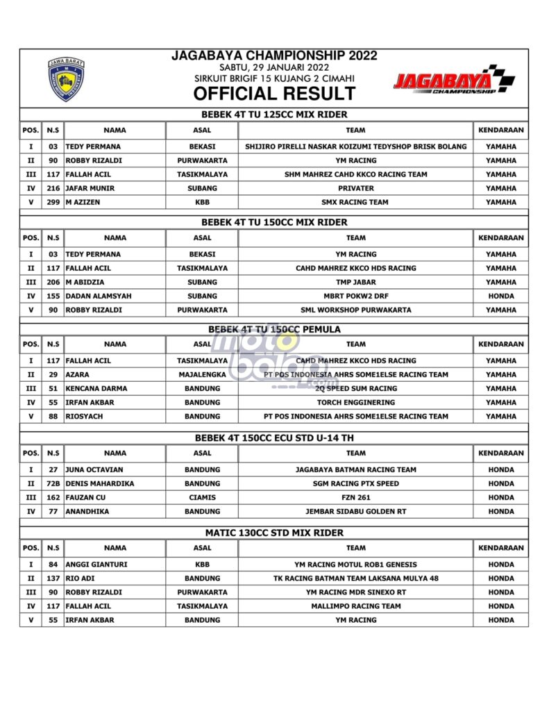 Berikut Hasil Race Jagabaya Championship 2022 seri 2 adalah sebagai berikut: