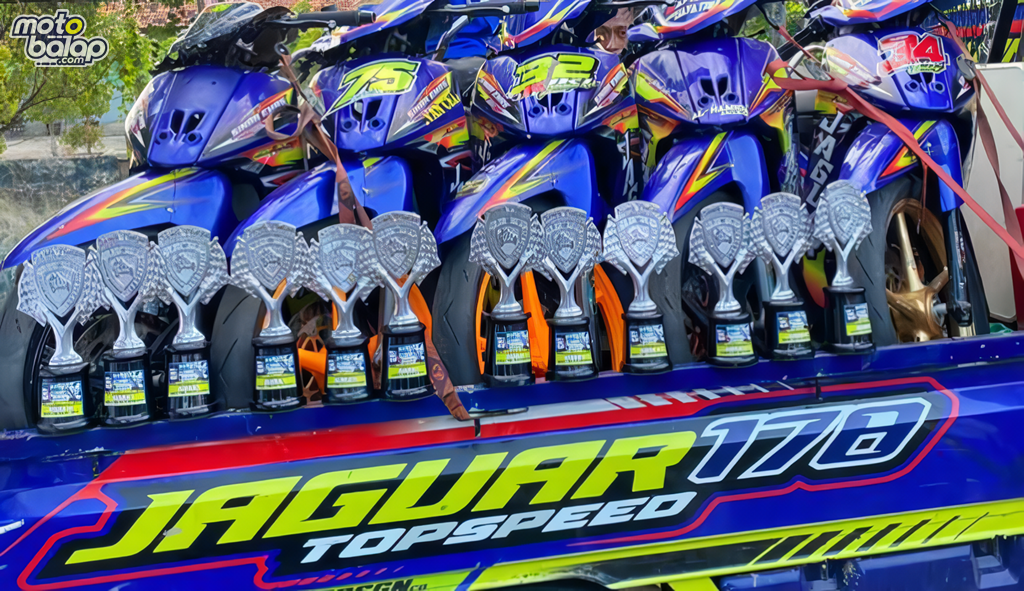 Jejeran piala Final Kejurprov Jatim yang di borong Jaguar Sinar Emas Madurace 126. (foto:Motobalap.com/BayuJeje)