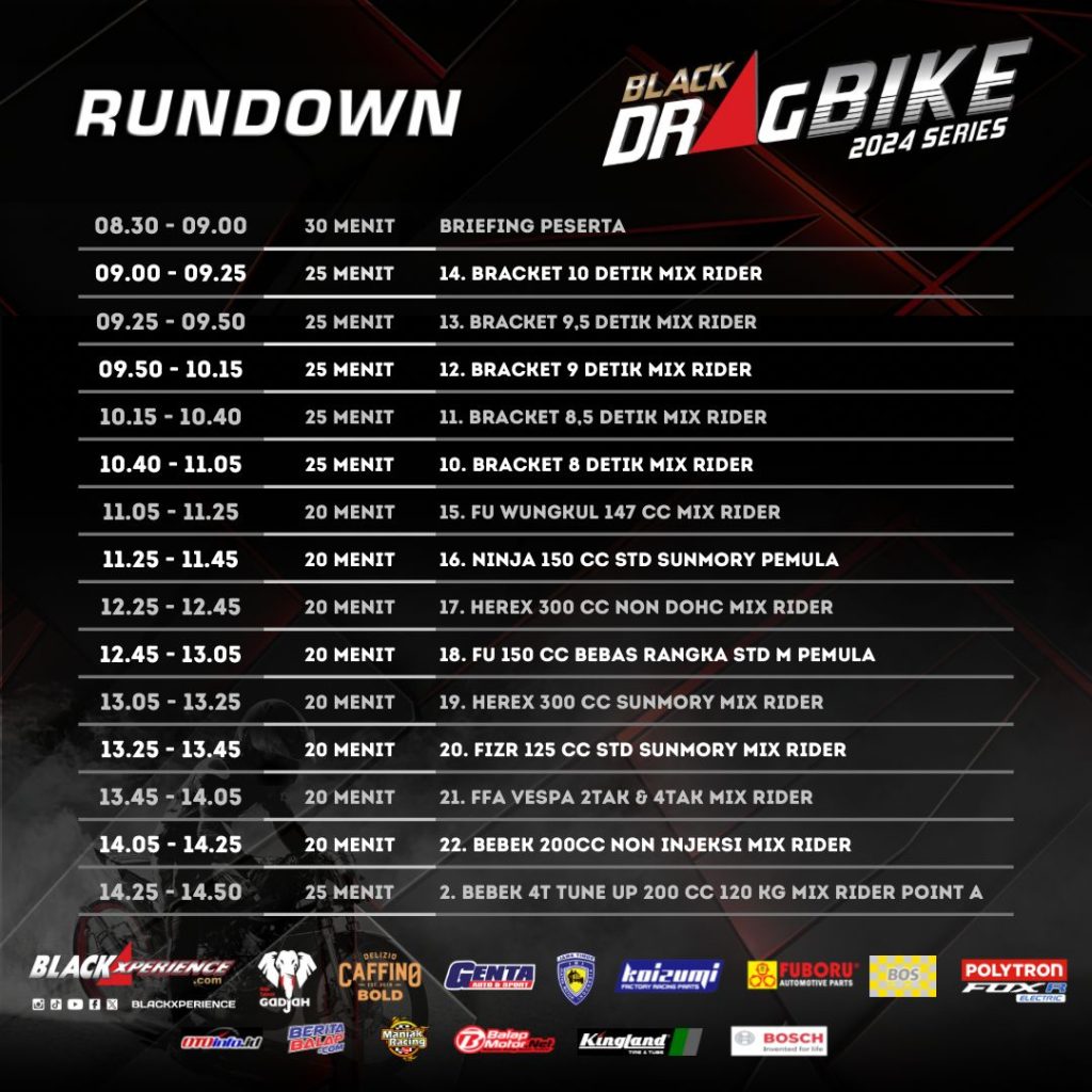 MOTOBALAP.COM- Black Drag Bike 2024 Series kembali akan digelar salam waktu dekat, dimana pada gelaran tahun ini tetap akan memperebutkan total hadiah ratusan juta rupiah. Beruntungnya lagi untuk warga masyarakat Surabaya dan sekitarnya karena event ini akan menyapa penggemarnya di Sirkuit Blackstone Sidoarjo-Surabaya, Jawa Timur, 2 Maret 2024.