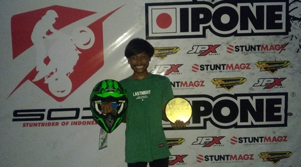 “Alhamdillilah, dalam beberapa event freestyle motor saya masih mampu mempertahankan gelar juara di kategori Beginner Matic,” ucap Juan Tito.