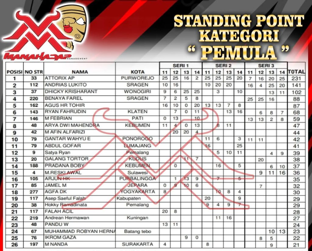 “Untuk kategori pemula poin masih aman, karena jaraknya yang lumayan jauh Atorix 231 poin sedangkan kedua jauh dengan 141 poin. Justru yang seru untuk kategori Kejurprov, poin masih rapat mungkin kita juga lebih fokus di perburuan poin kelas tersebut,” Ujar Martin CP owner tim Arya 117.