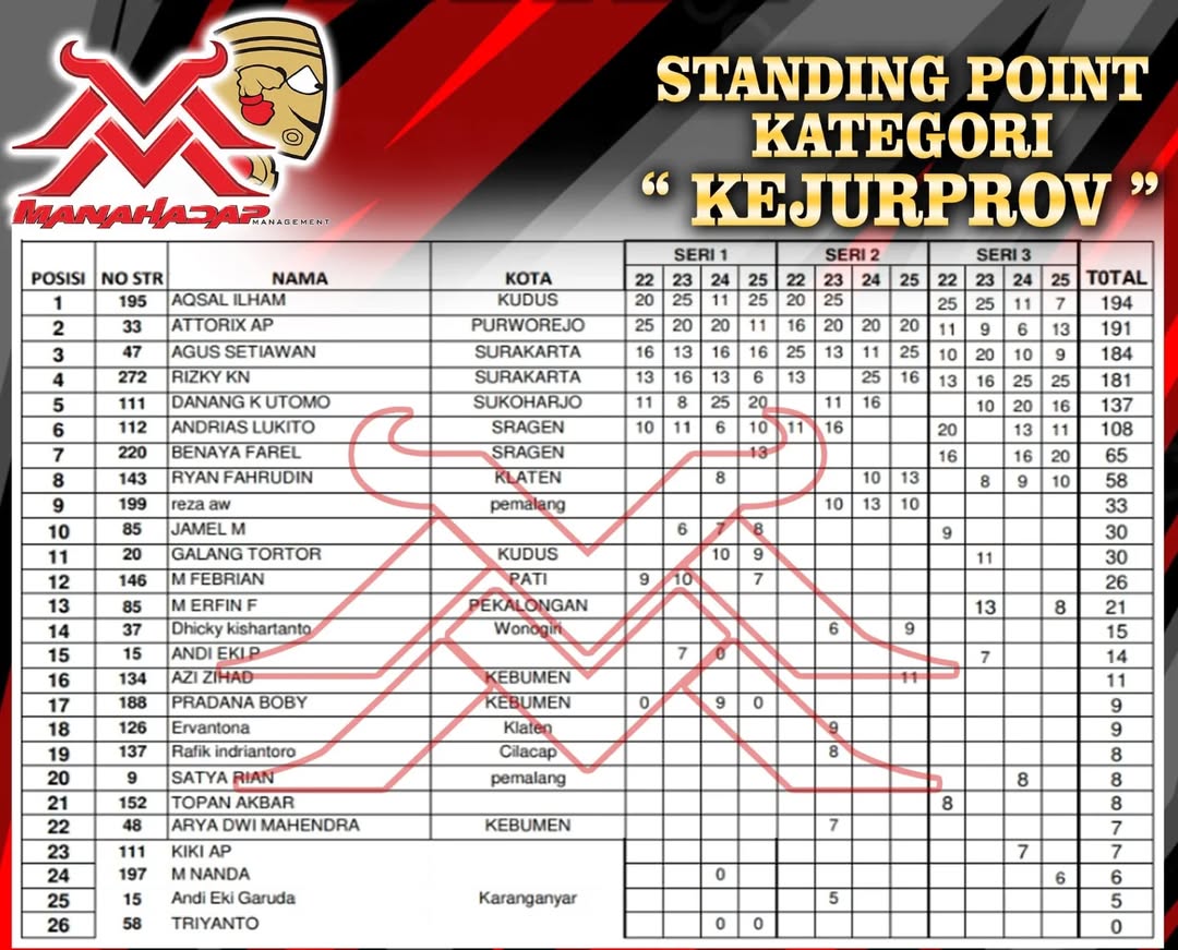 Pada kategori Kejurprov sendiri Atorix Ap, masih tertinggal 3 poin dengan Aqshal Ilham. Dimana Atorix pada posisi ke dua dengan 191 poin sedangkan Aqshal 194 poin, meskipun begitu Martin CP engan sesumbar. Bahkan dirinya mengintruksikan timnya main enjoy dan lepas tapi tetap fokus.