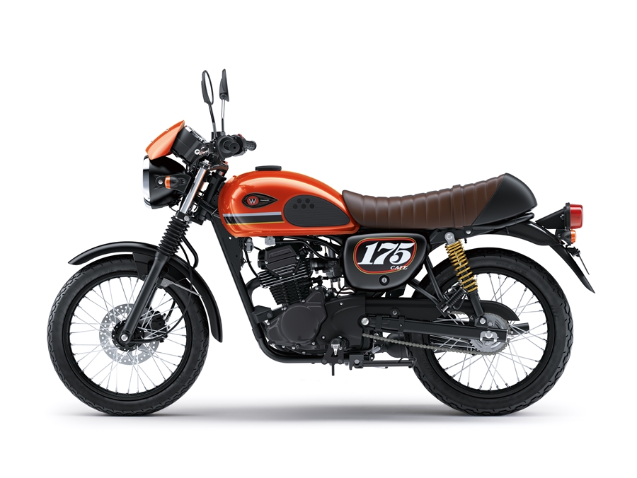 Varian terbaru W175 CAFE tampil dengan color dan graphic (C & G) baru. Warna-warna yang hadir adalah hitam, orange dan, silver.