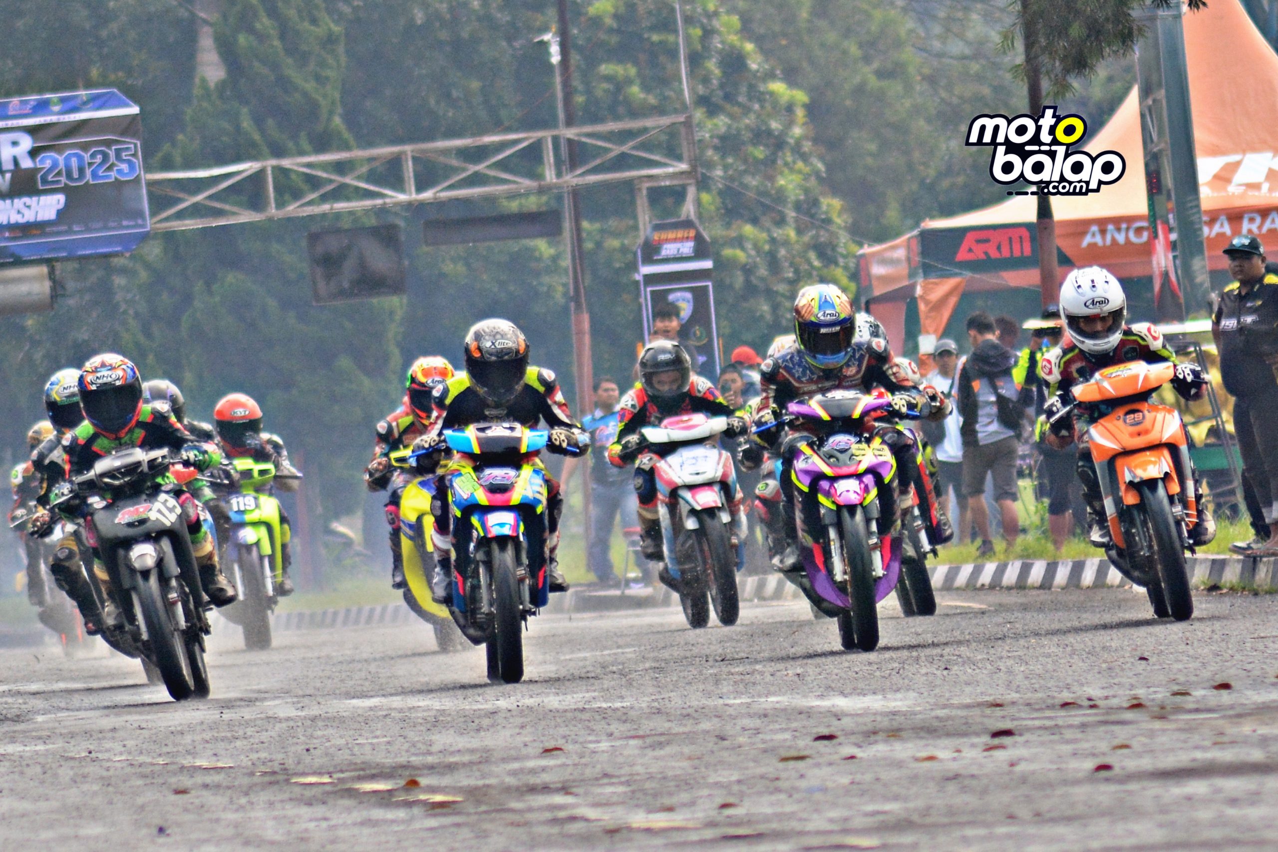 MOTOBALAP.com – Ajang balap motor bertajuk Sumber Production Road Race Championship 2025 berlangsung sengit di sirkuit Non Permanen Brigif 15 Kujang II Cimahi, Sabtu (21/6).