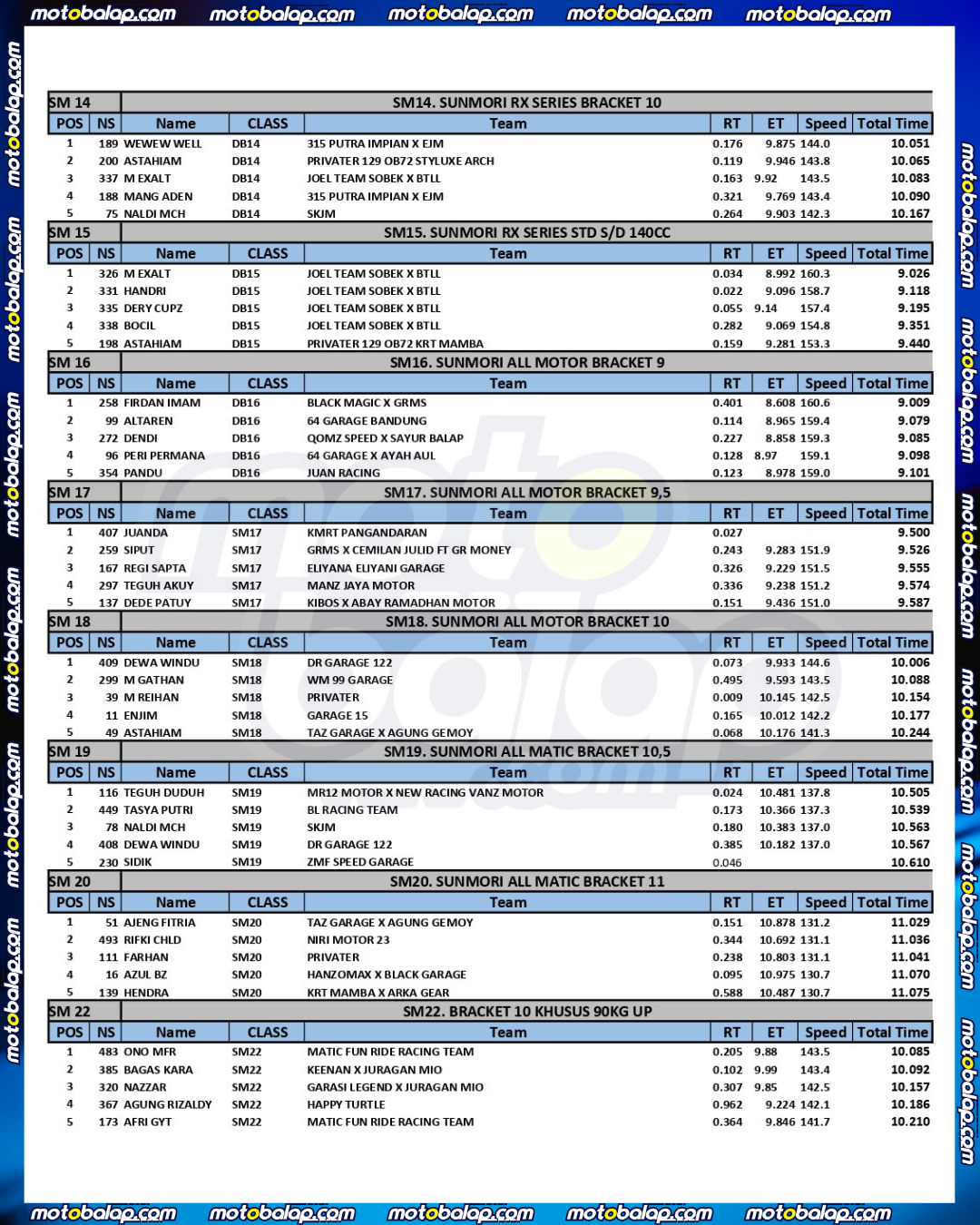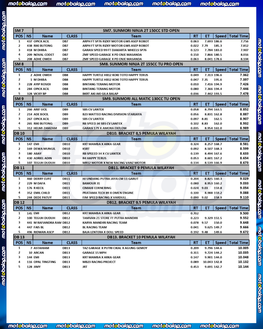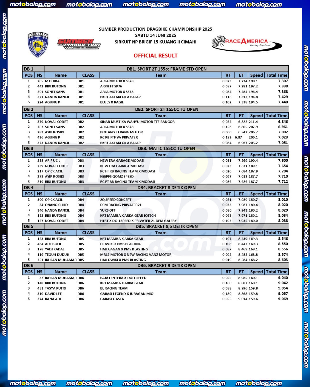 Dari keseluruhan kelas yang dilombakan, Lihat Hasil Sumber Production Dragbike Championship 2025 Cimahi adalah sebagai berikut: