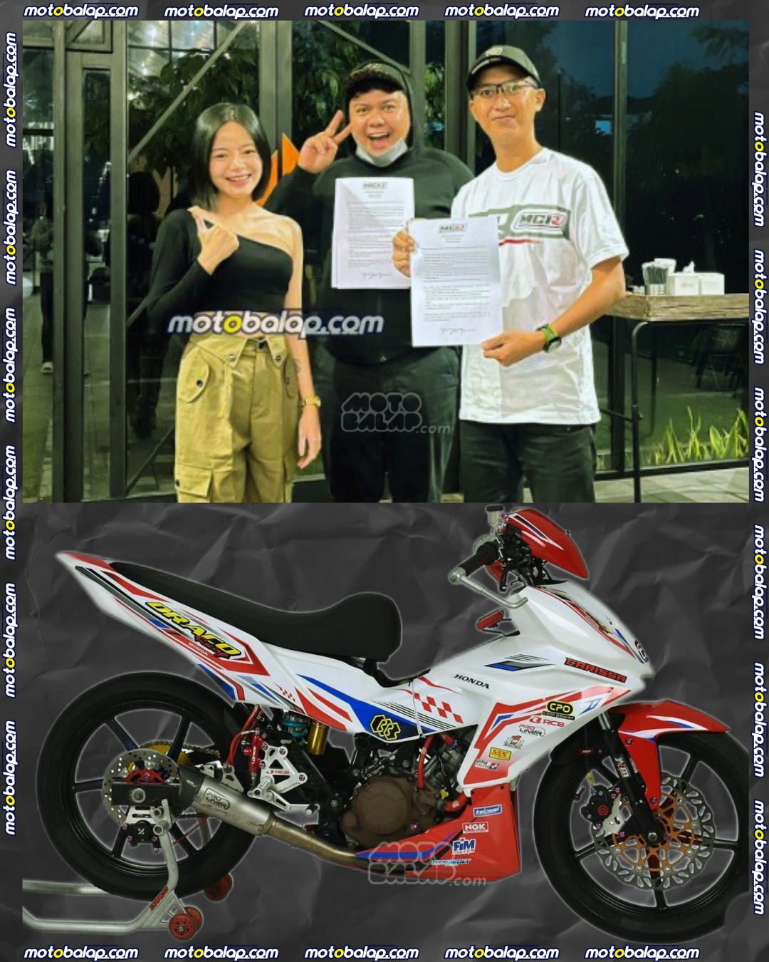 MOTOBALAP.COM – MCR Racing Parts, merek suku cadang performa tinggi yang telah dikenal luas di dunia balap motor Indonesia, kini resmi memperluas jangkauan ke Pulau Sumatera. Kemitraan ini dilakukan melalui kerjasama strategis dengan Honda Draco, salah satu tim balap motor ternama di wilayah Riau.