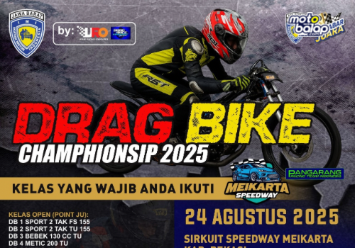 MOTOBALAP.com – Meikarta Speedway akan kembali menjadi tuan rumah ajang kebut lurus. Spesialnya pada kali ini akan menggelar dua event sekaligus, yaitu Kejurprov IMI Jabar Dragrace Putaran 2 pada 22-23 Agustus dan Dragbike pada 24 Agustus 2025.