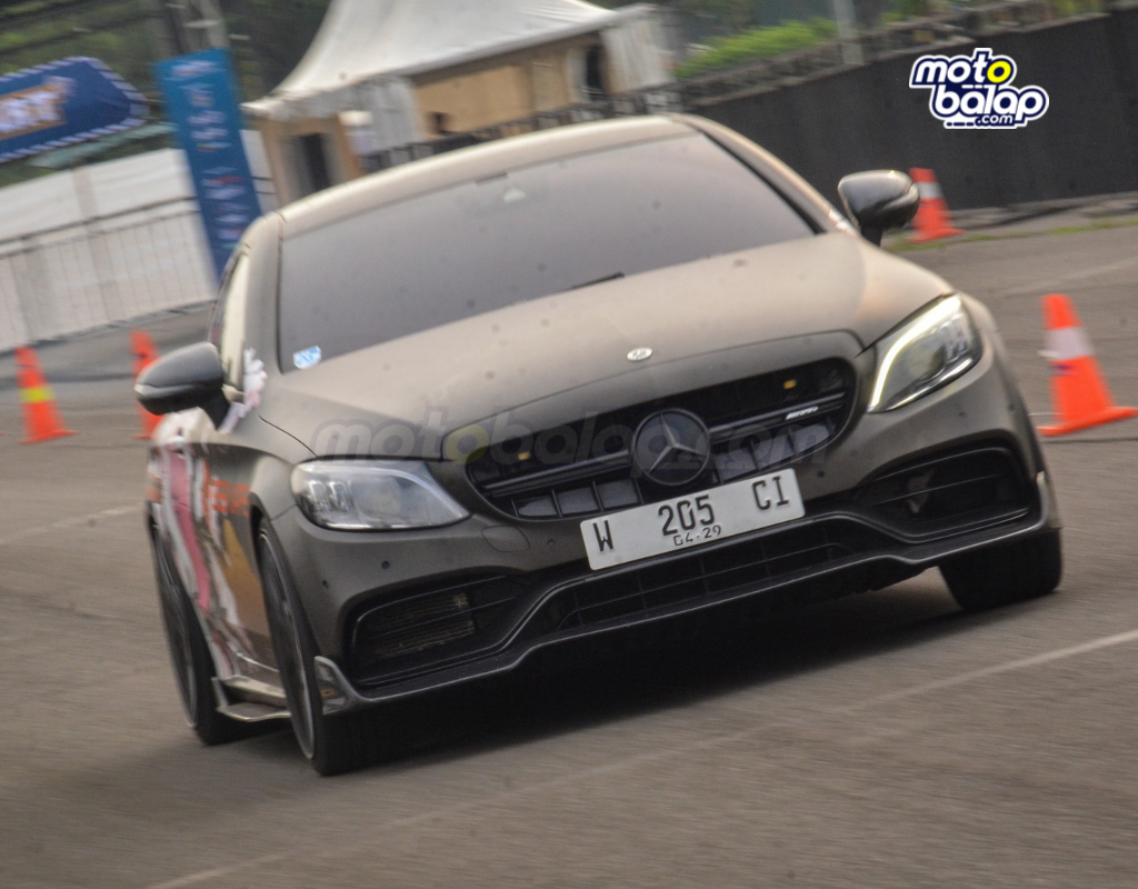 Michael Chang pacu Mercedes Benz W205 di gelaran Bekasi Benz Festival 2025. Foto Motobalap.com | Nunu.