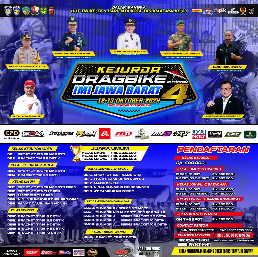 Untuk Informasi & juga pendaftaran bisa langsung melihat flyer yang terlampir pada artikel ini. So, jangan sampai ketinggalan ikuti & saksikan Kejurda IMI Jabar Dragbike & Grasstrack di Lanud Wiriadinata 12-13 Oktober 2024.