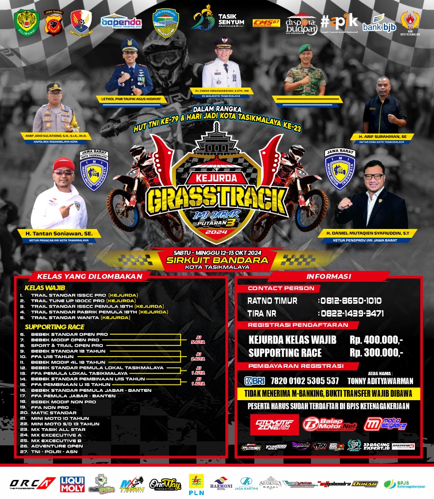 Sedangkan untuk grasstrack akan mempertandingkan 27 kelas dengan 5 kelas kejurda dan 22 kelas supporting. 4 gelar juara umum pun disajikan pada putaran 3 ini yaitu kategori open dengan hadiah 5 juta rupiah, usia 18 tahun dengan hadiah 2 juta rupiah sedangkan usia 15 tahun & lokal Tasikmalaya masing-masing 1 juta rupiah.