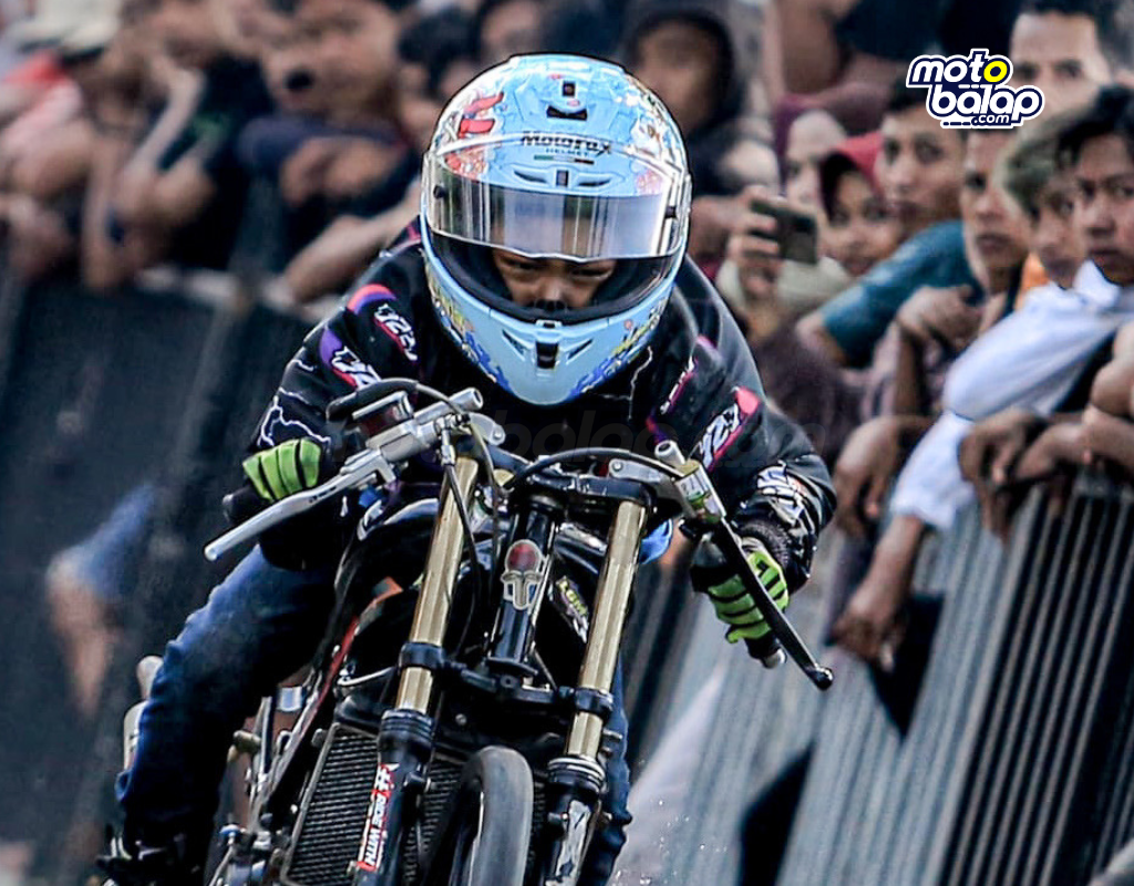 MOTOBALAP.com – Dragster belia dengan potensi luar biasa Rizky Unyil tampil impresif pada gelaran Piala Bupati Drag Bike Rookie Championship 2025 yang berlangsung di Sirkuit NP Jalan Lingkar Baru Bulak Elor, Ketanggungan, Brebes, Minggu, 25 Mei kemarin. Penampilannya mengundang decak kagum para penonton yang melihatnya.