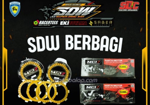 Bertema SDW Berbagi, akun resmi milik SDW memberikan kesempatan kepada para pengikutnya (follower) akunnya untuk mendapatkan berbagai suku cadang balap berkualitas dari MCR Racing Part.