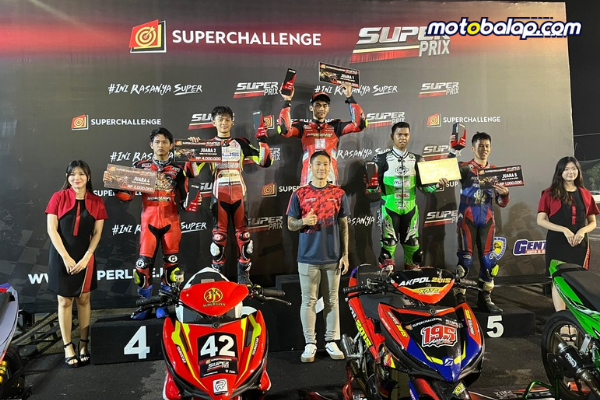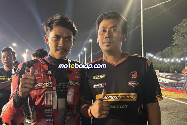 Pembalap asal kudus tersebut berhasil menorehkan double winner. Terbaik alias juara di pertarungan Bebek 4T TU 130cc dan juga Race 1 Bebek 4T TU 150cc (MP1).