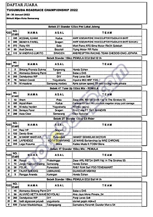 Tugu Muda Road Race 2022: Sirkut Mijen Terlihat Elegan dan Istimewa. Ini Hasil Juaranya Kelas Pemula, MOTOBALAP.COM – Hari Pertama Tugu Muda Road Race 2022, hadirkan 12 kelas kategori Pemula final dimana jalannya perlombaan memanas dan semakin sengit yang berlangsung di sirkuit Mijen, Semarang, Jawa Tengah, Sabtu (29/01/2022).